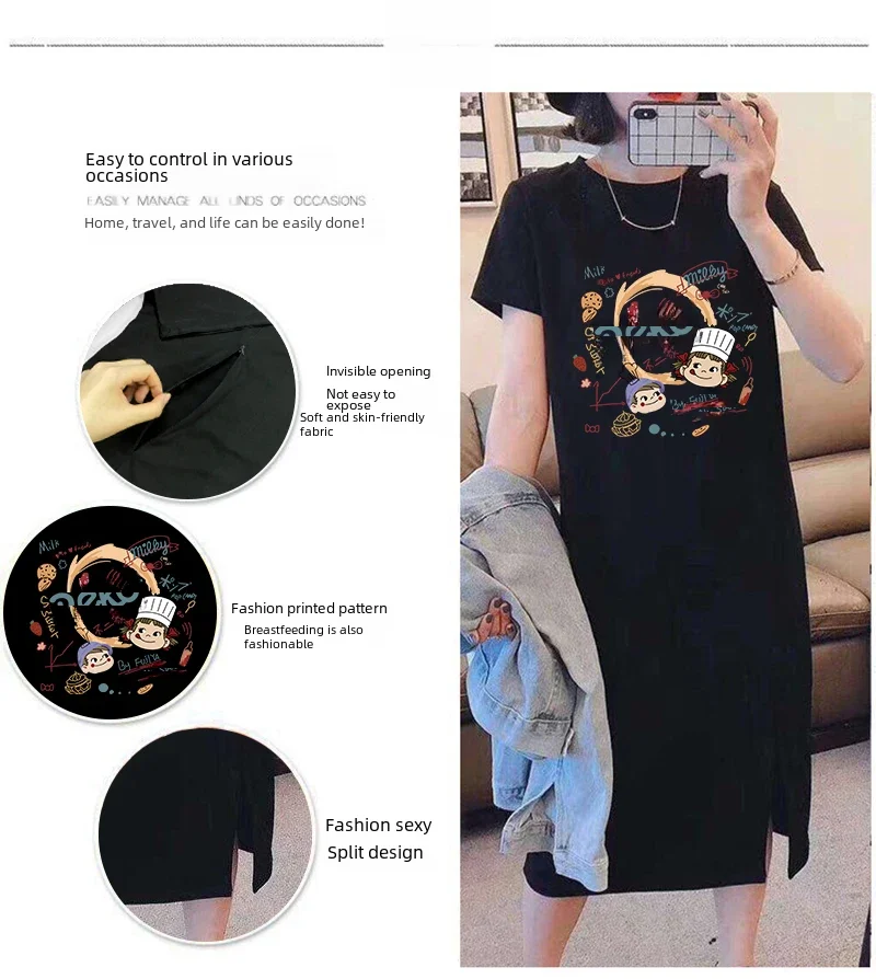• Fashionable Cartoon Design :This maternity dress features a trendy cartoon design, adding a touch of whimsy and charm to your summer wardrobe.