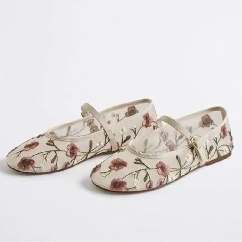 Model Number: Mesh Breathable Ballet Flats Women Luxury Designer Embroidered Flower