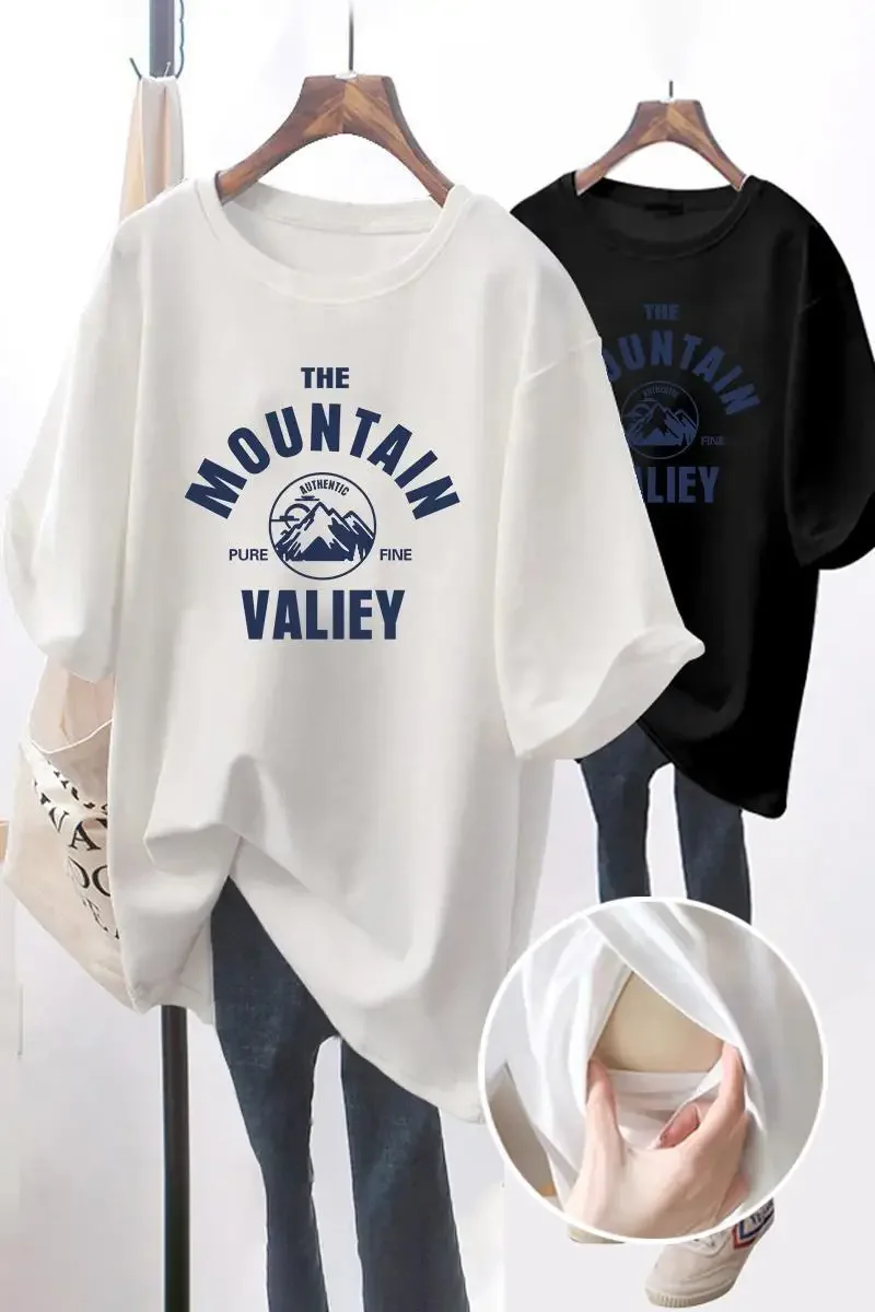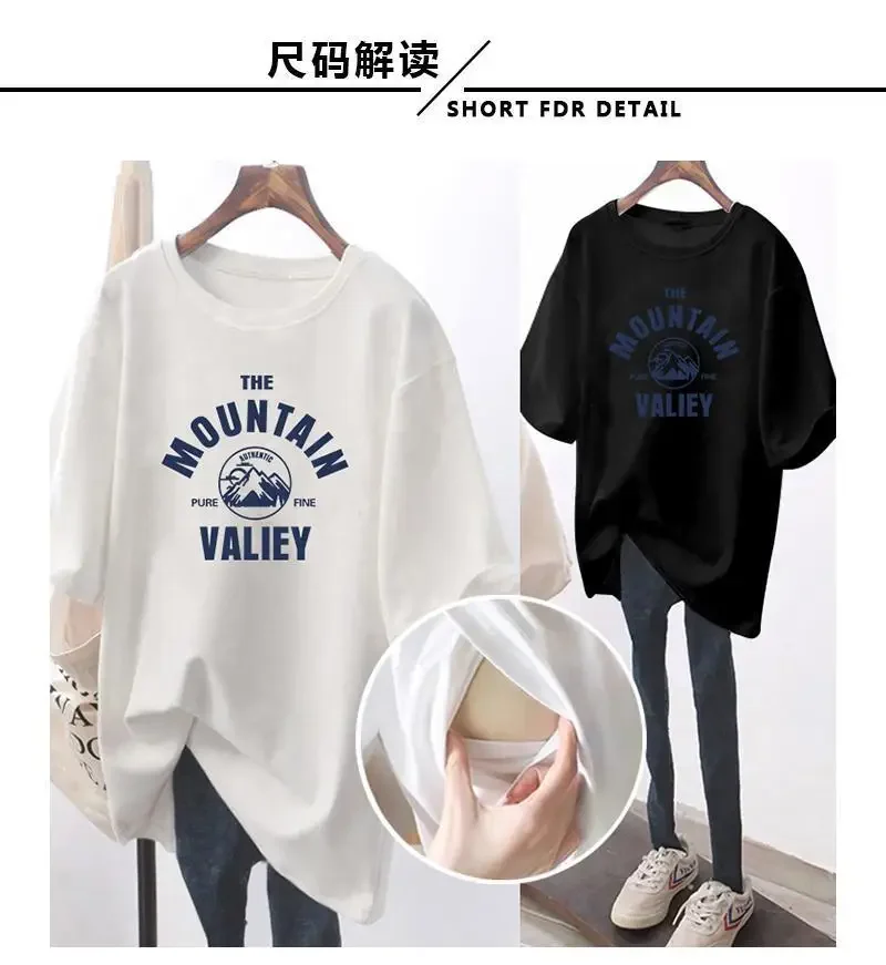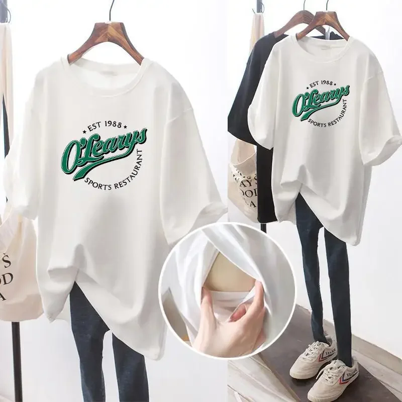 Summer Pregnant Mom Prints Loose Nursing Tops Postpartum Mommy Casual Breast Feeding Clothes Womens Pregnancy Maternity T-Shirt