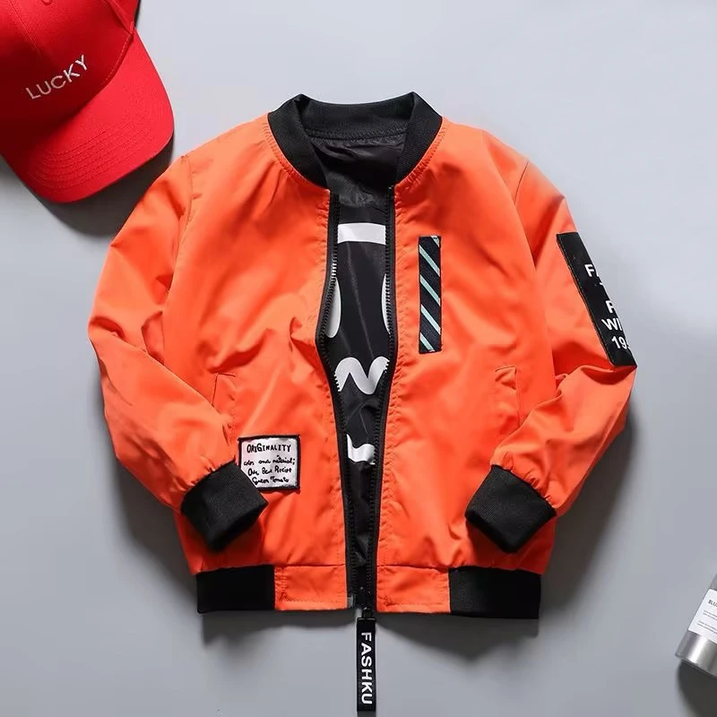 Teen Boys Double Sided Wear Jackets 2025 Spring Autumn Kids Fashion Handsome Zipper Coat Children's Clothing Bomber Jacket 4-14Y