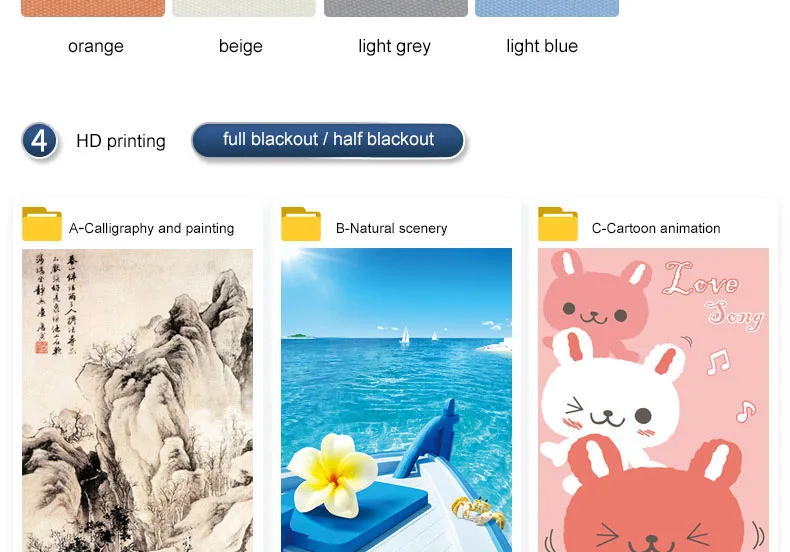 2、Roller Blinds width=Fabric width+Brackets width (3~4cm). The width is considered by default as blinds' width unless otherwise specified;