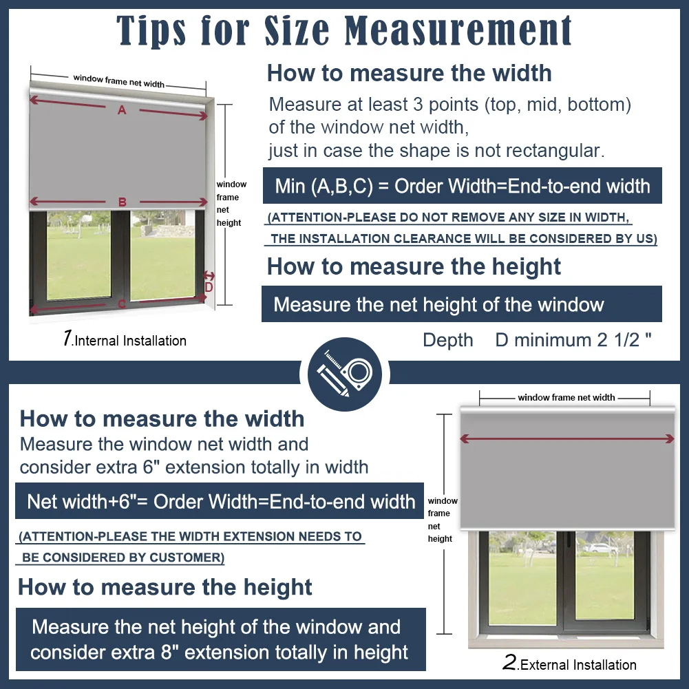 3、Please tell us your roller blinds size, NOT the fabric size.(including mechanism width);