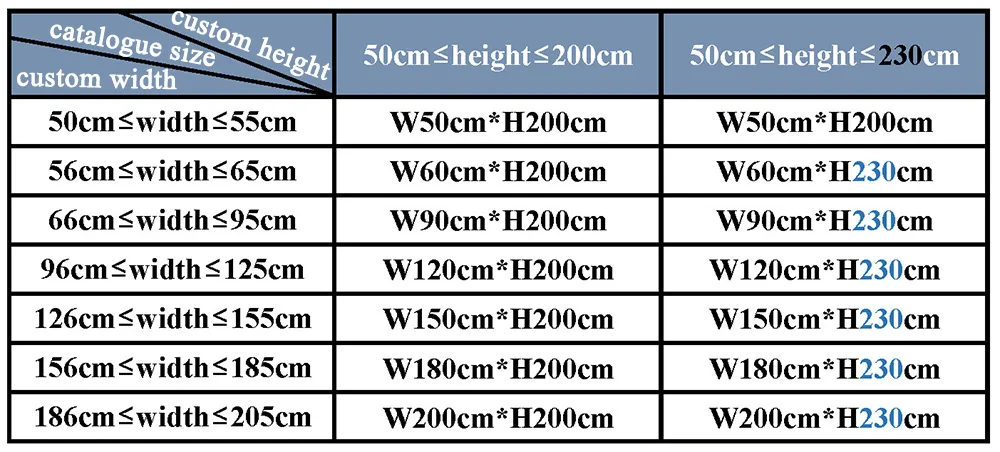 6、Fabric Height Specification is 200cm ,230cm , 250cm ,300cm.How to choose the size?