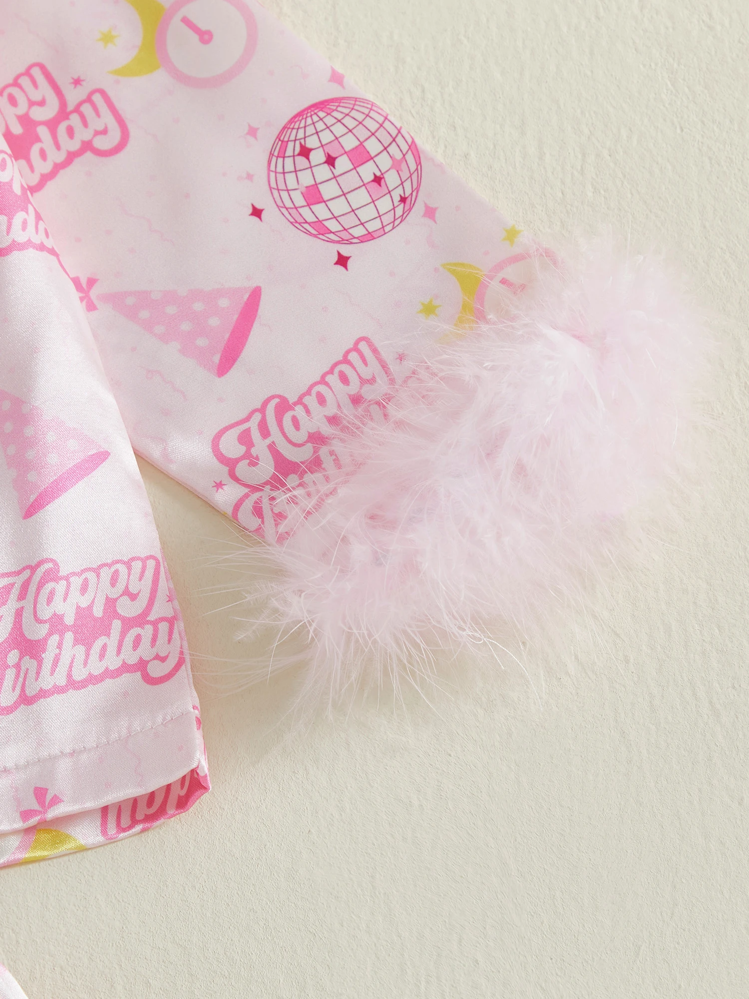 Toddler Girl Fall Pajamas Set Letter Ball Print Lapel Long Sleeve Button Down Tops with Pants Birthday Sleepwear