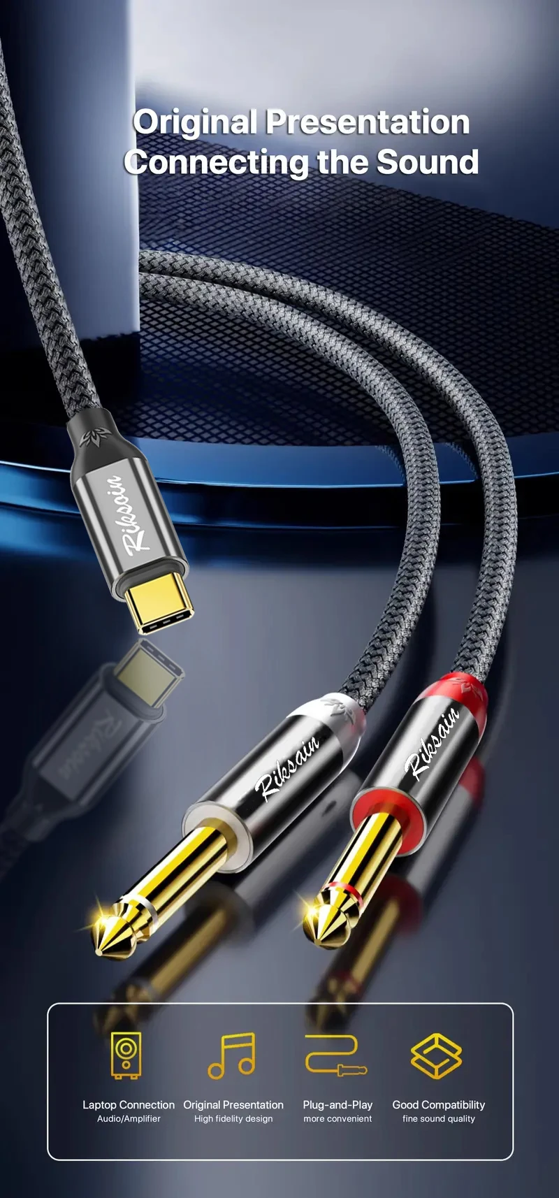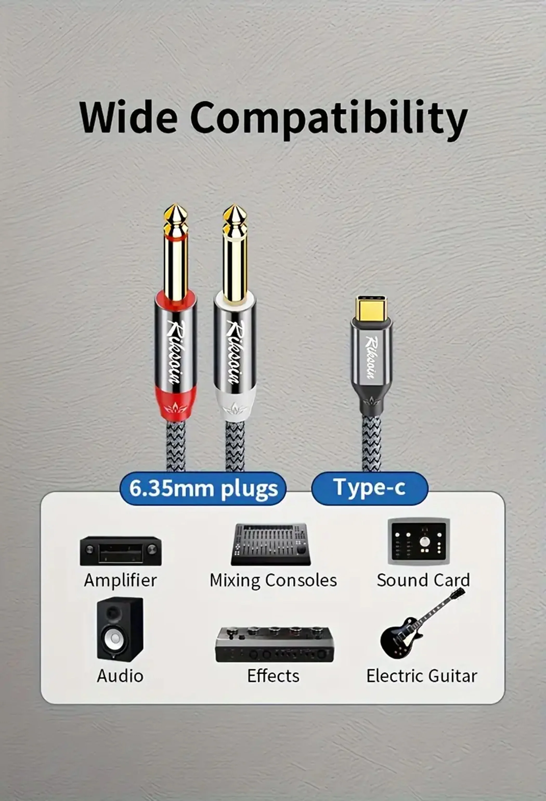 ⭐USB-C dual channel TS splitter Y, 1/4 hole (6.35mm), can provide high fidelity sound quality from 96kHz to 32-bit, with large and natural tones and non color tones, complementing ordinary tones.