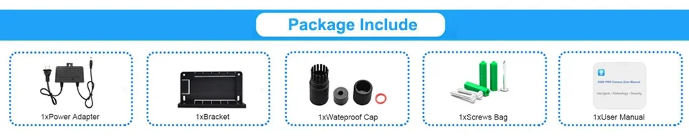 1x Power Adapter(EU/US/UK/AU For Options), 1x Bracket, 1x Waterpfoof Cap, 1x Screws Bag, 1x User Manual,Why Choose This Camera?