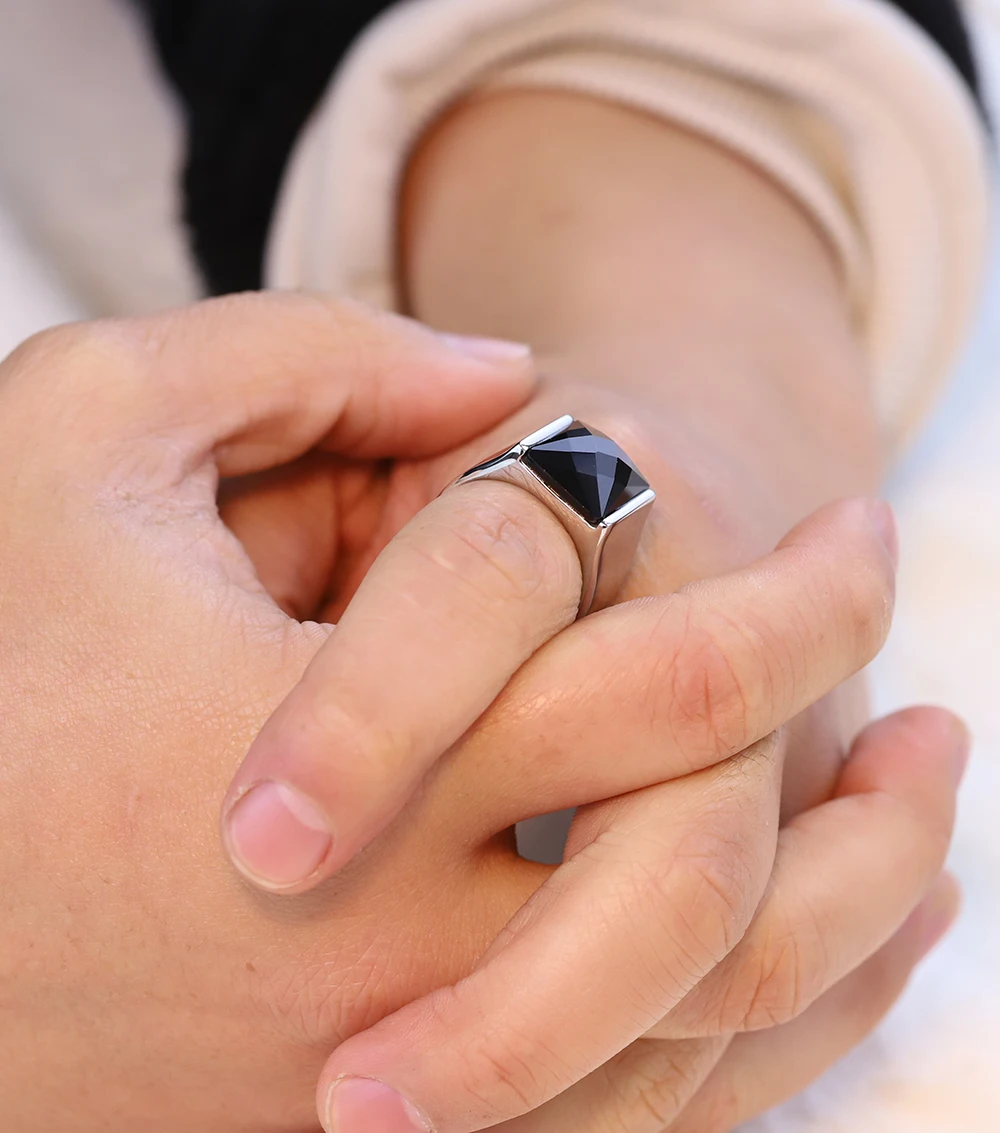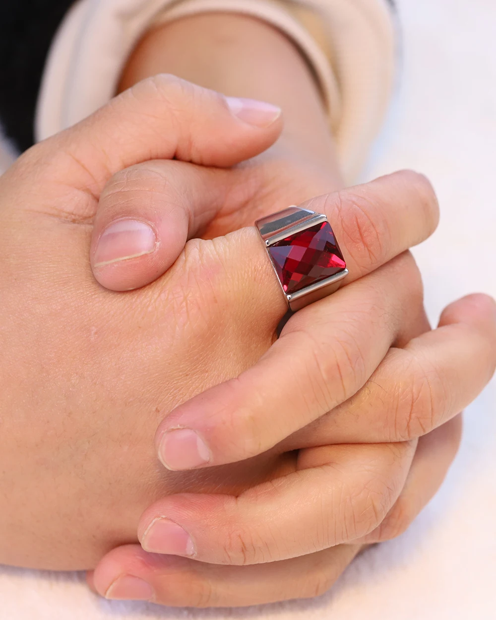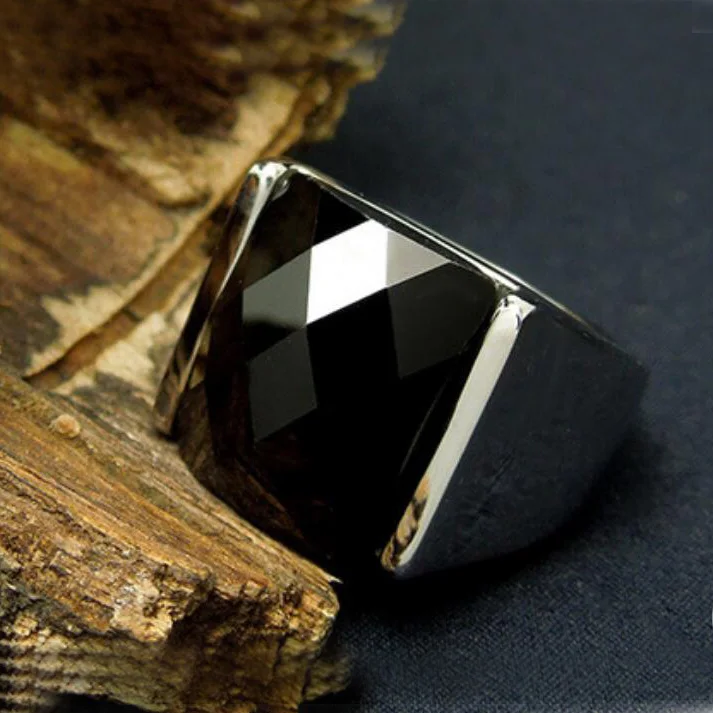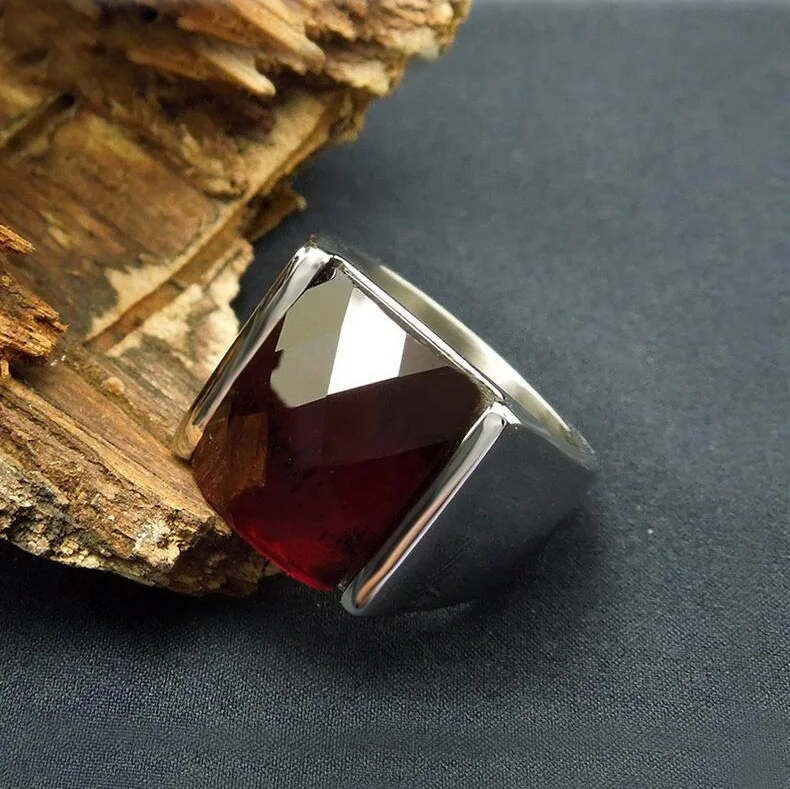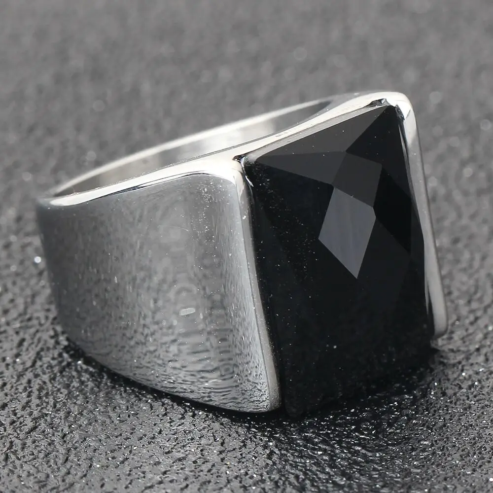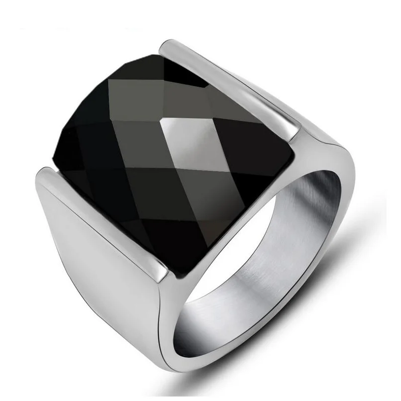 Vintage Design Stainless Steel Ring With Red Or Black Onyx Never Fade Fashion Men Jewelry Accessories Rings For Party