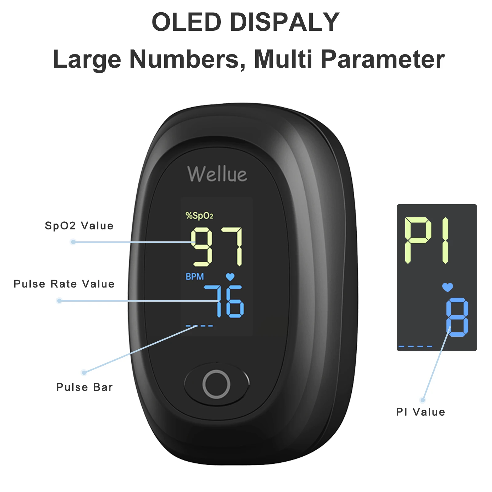 Multi-dimensional, Non-invasive and AccurateFor you to accurately measure your SpO2, PR (Pulse Rate) and PI (Perfusion Index), you can also pay attention to your own pulse wave intensity.