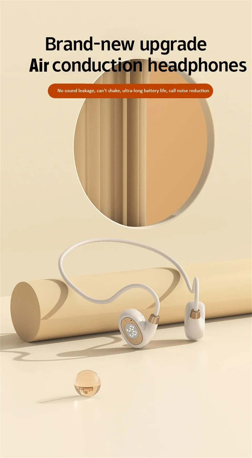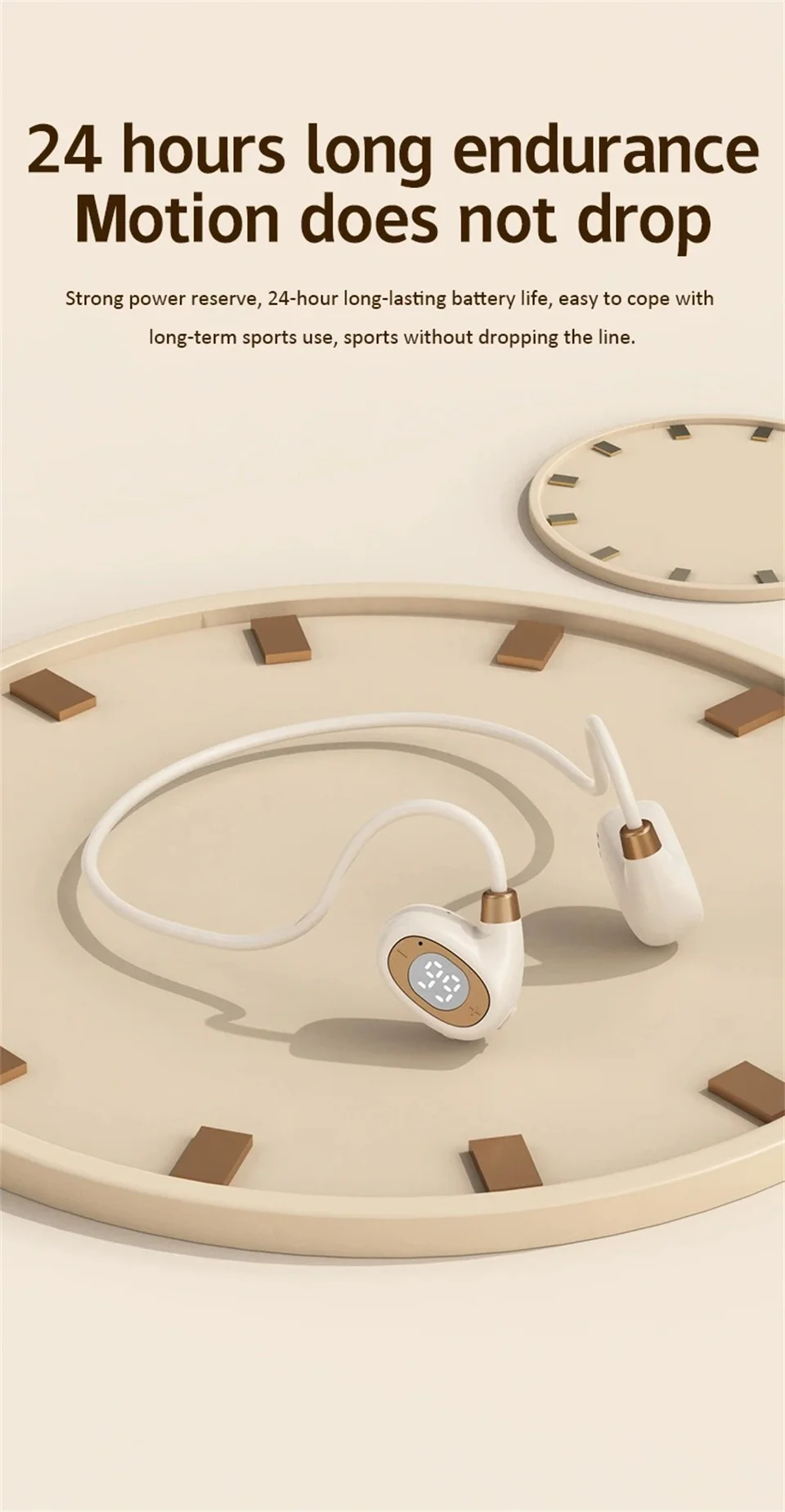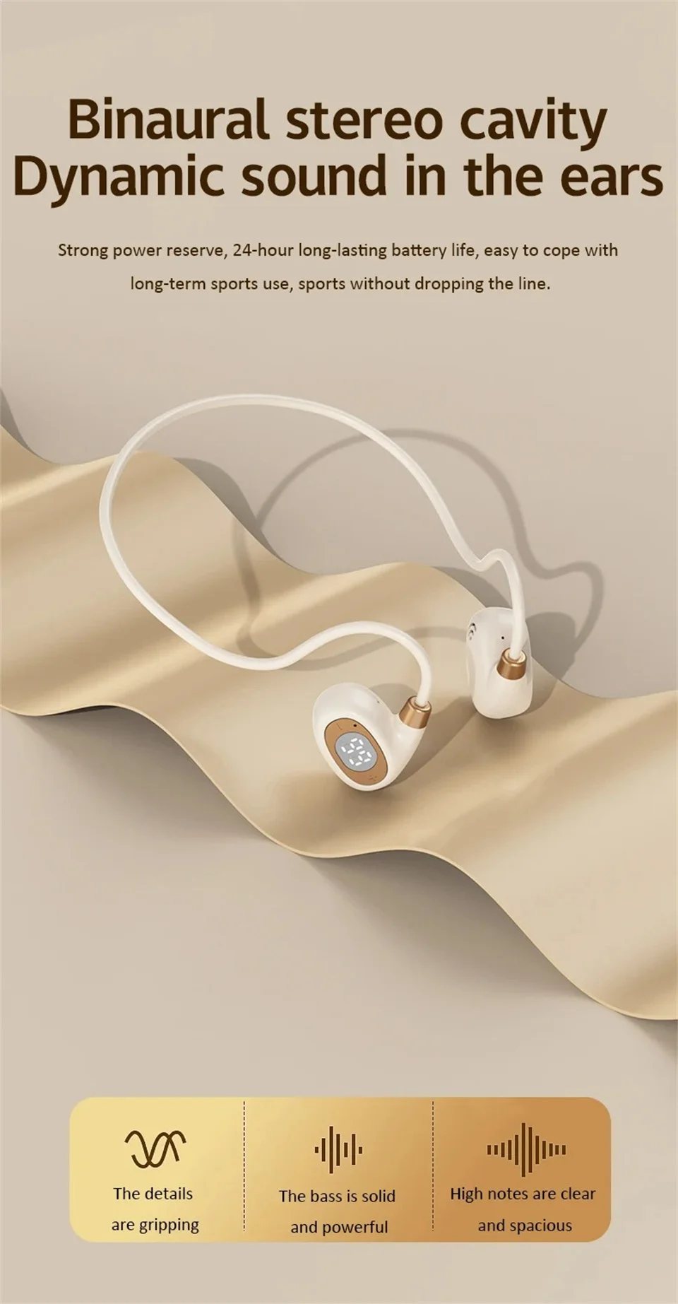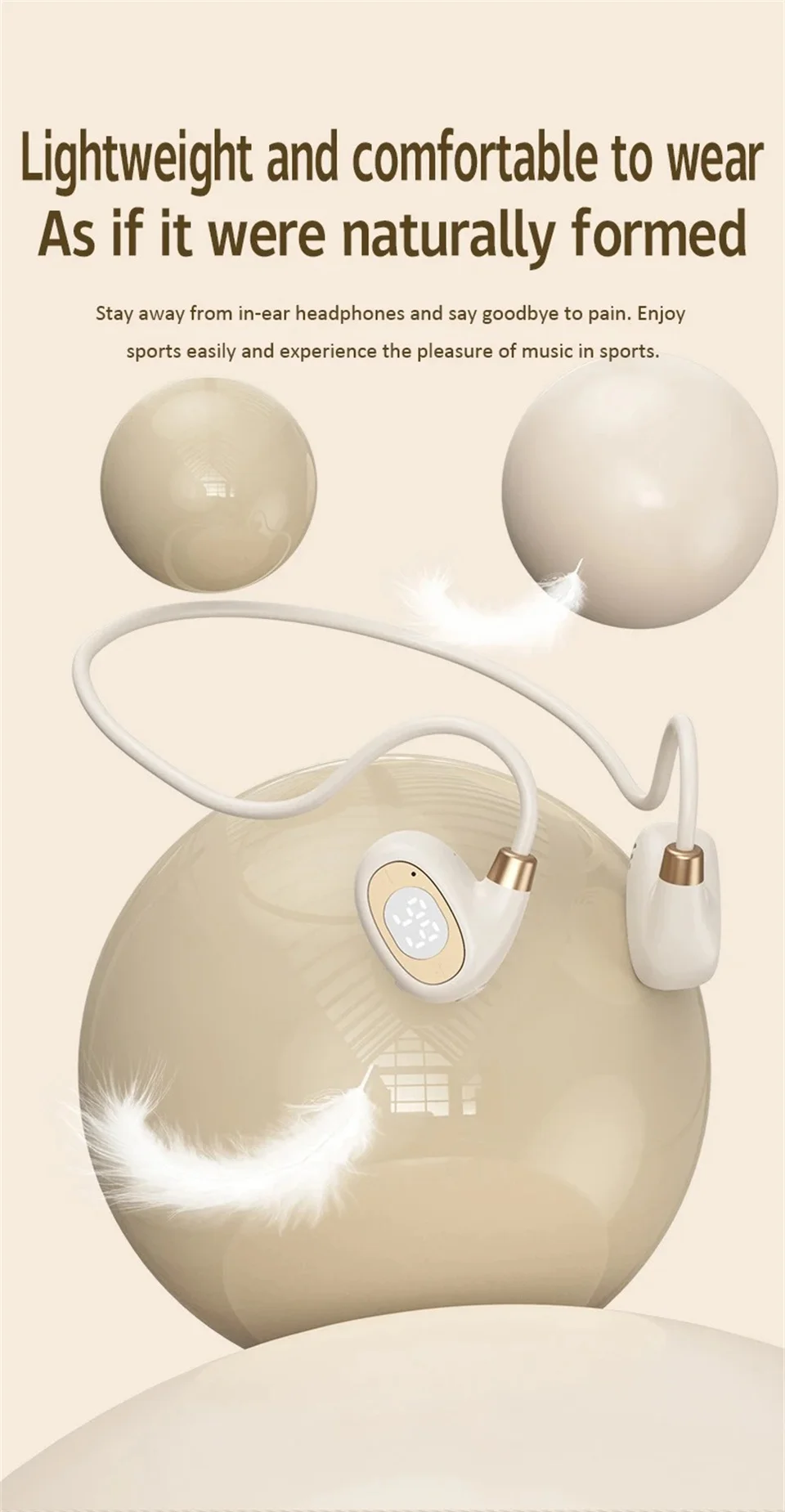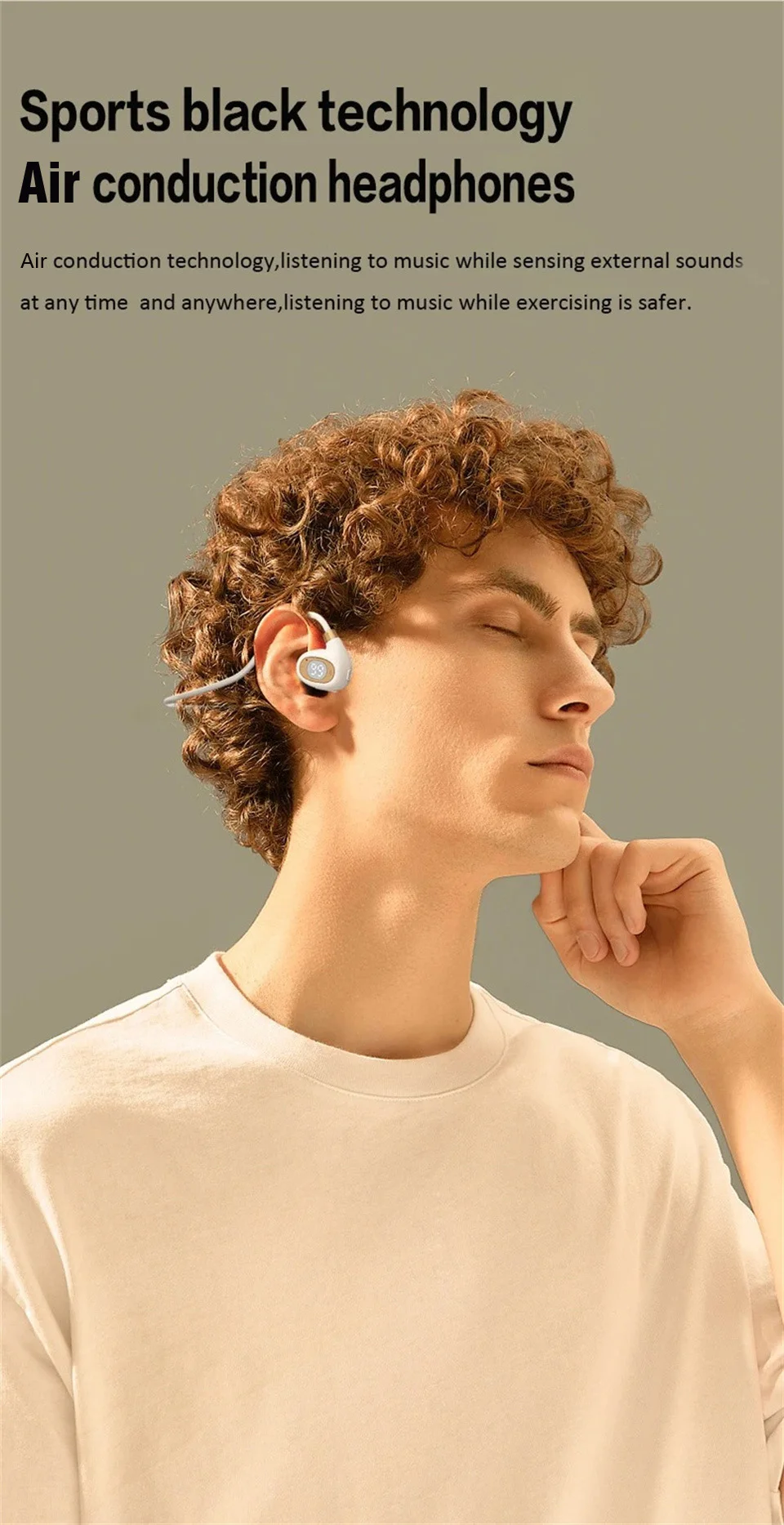 ♬ Air conduction design: You can perceive external sounds anytime and anywhere while listening to music, making it safer to listen to music during exercise.