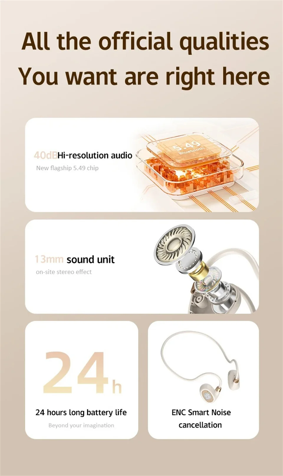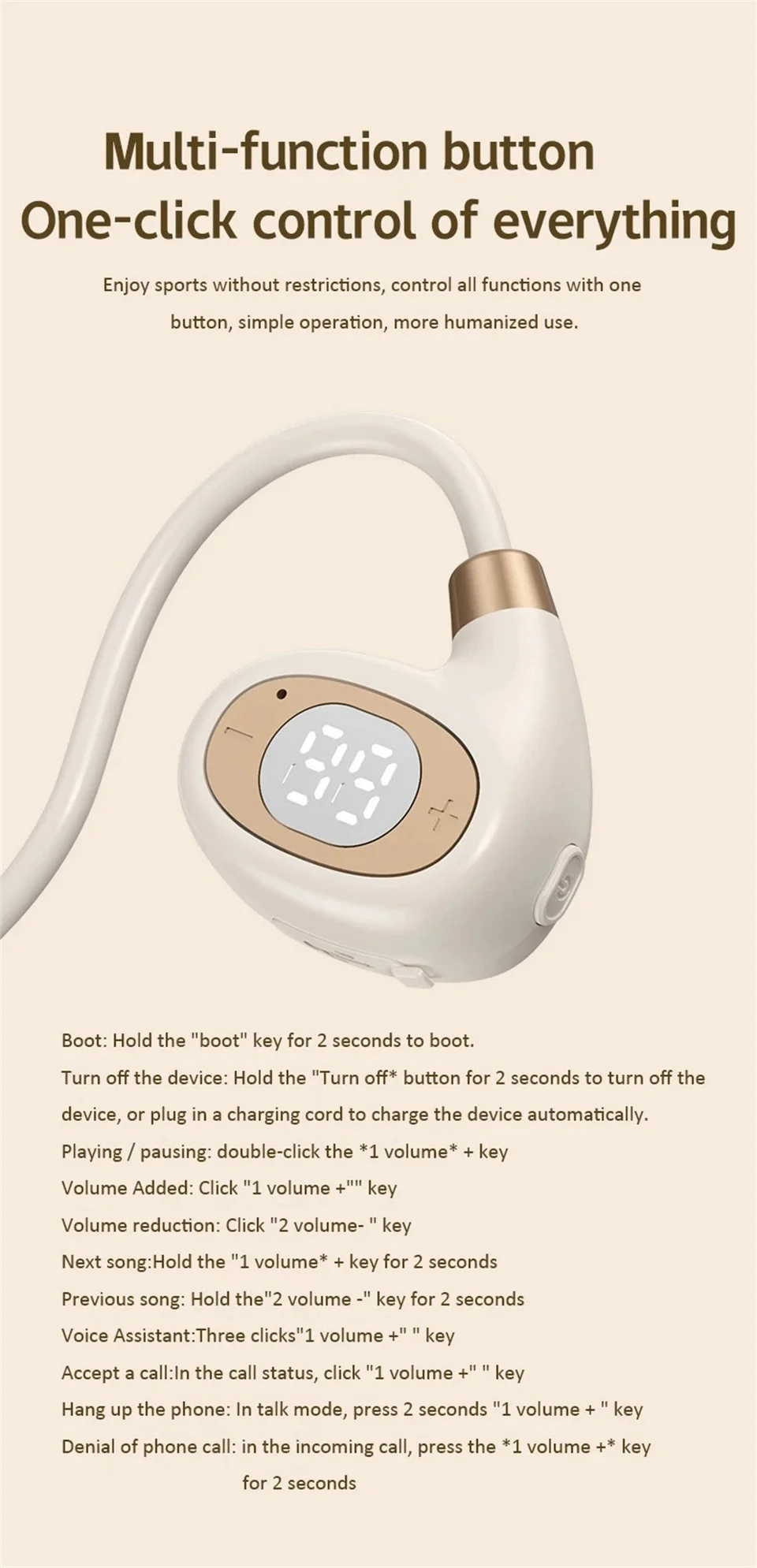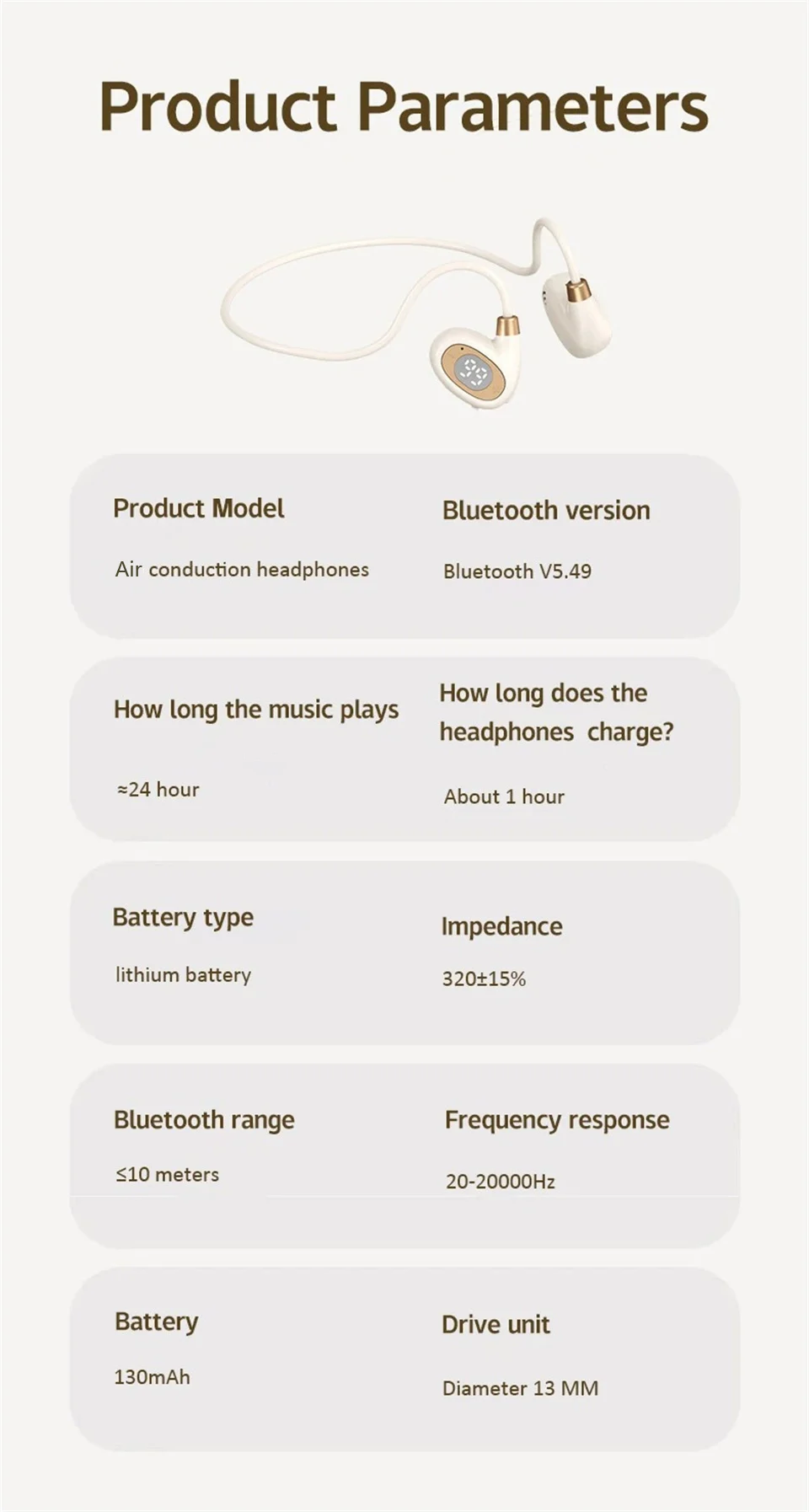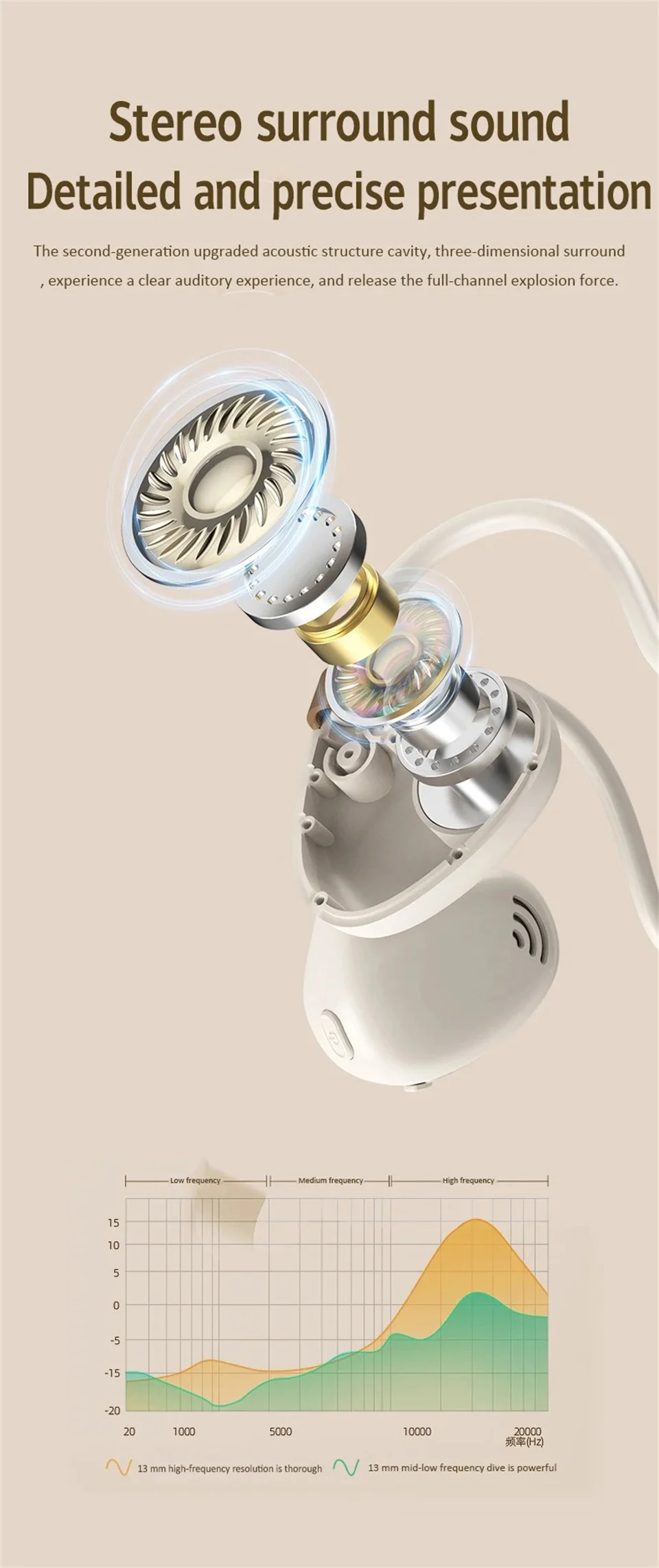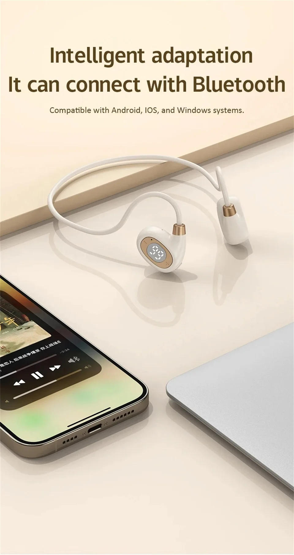 ♬ Air conduction design: You can perceive external sounds anytime and anywhere while listening to music, making it safer to listen to music during exercise.