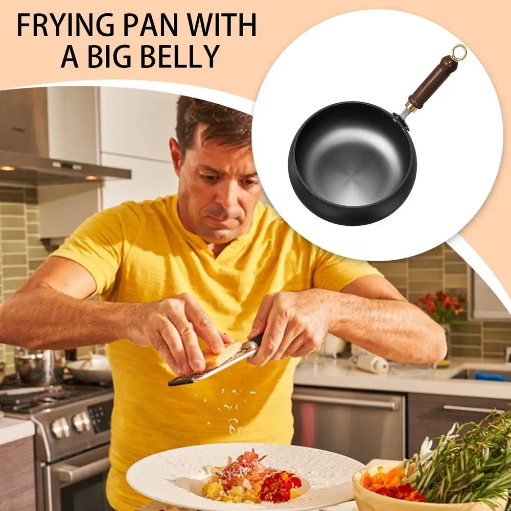 Crafted for household daily use, this wok pan is made of dependable iron, providing longevity and dependable performance as a versatile cookware tool. Its heat-resistant design makes it suitable for meal making in various settings, including at home, in restaurants, or while camping. suitable for electric stoves and induction cooktops, it works in cooking vegetables, chicken, pork, mushrooms, and beef, delivering consistent results every time.