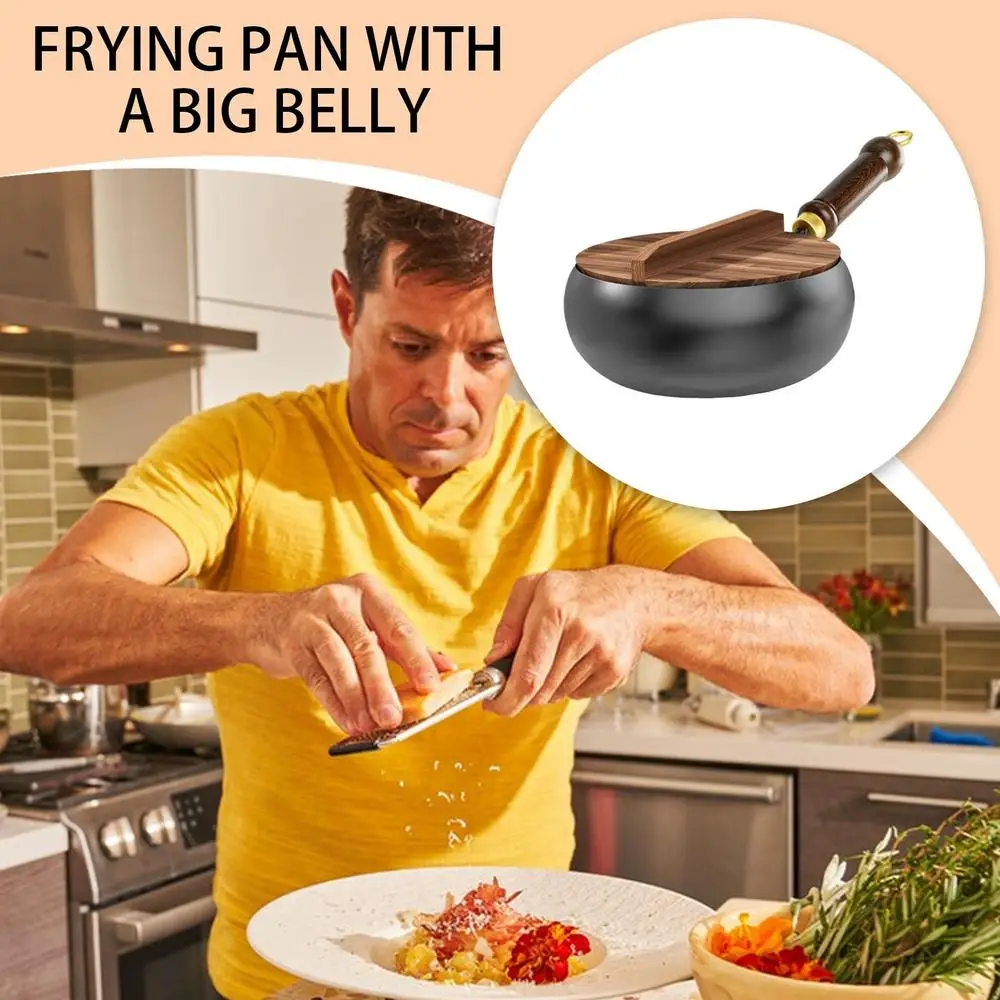 2.Balanced Cooking Experience: Featuring an expanded belly shape, this wok pan delivers even heat distribution and prevents ingredients from spilling during stirring or tossing