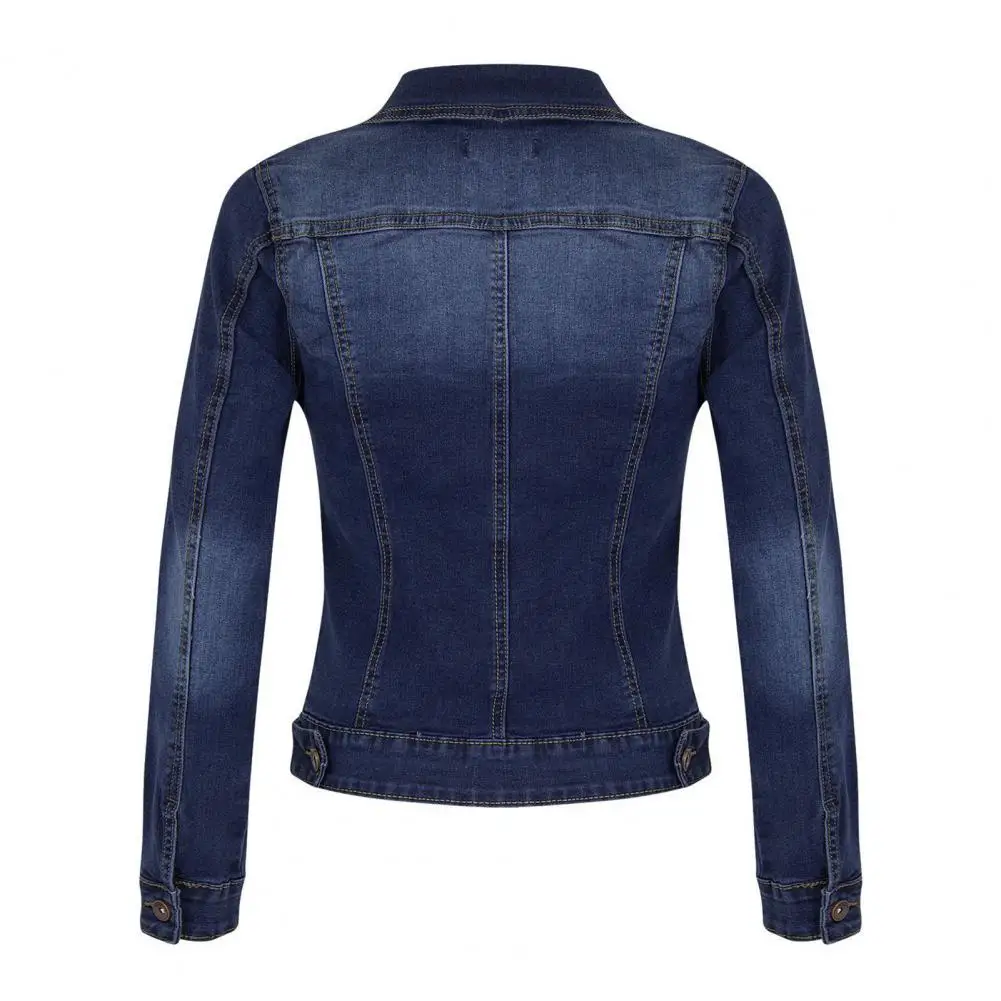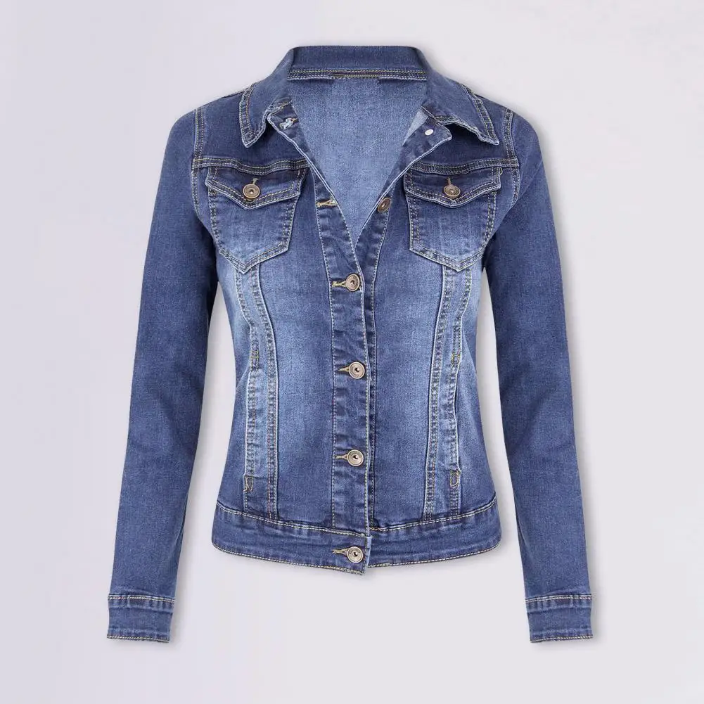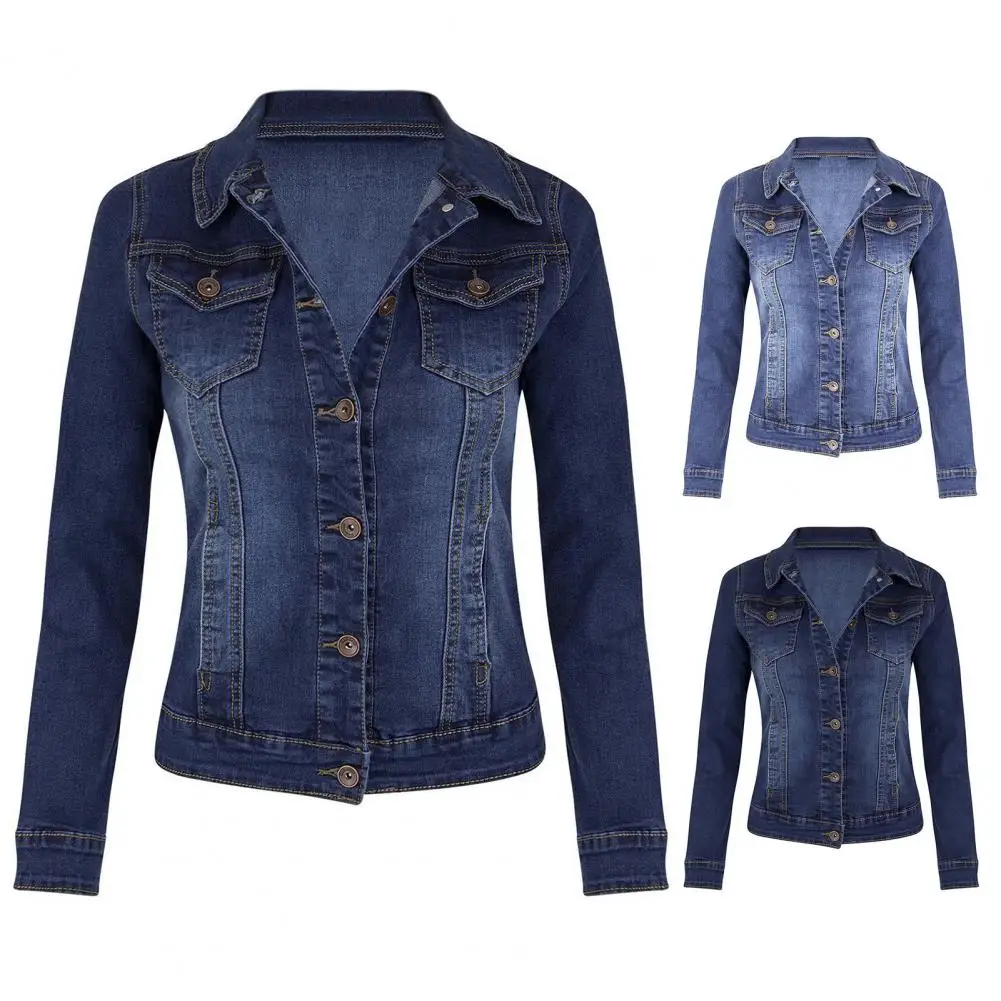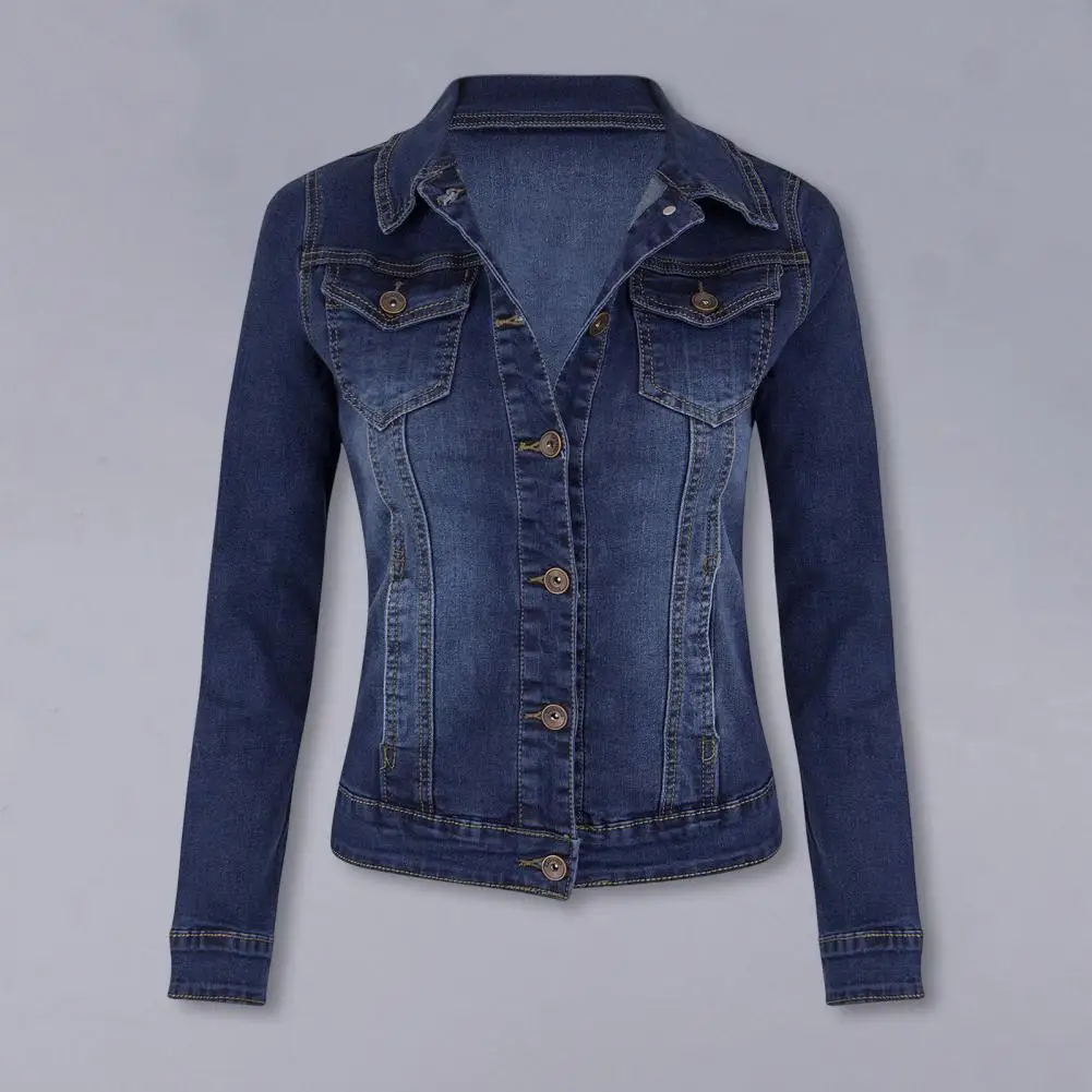 Women Denim Jacket Retro Single-breasted Slim Fit Turn-down Collar Long Sleeves Solid Color Flap Pockets Lady Coat Commuting Shopping Jacket
