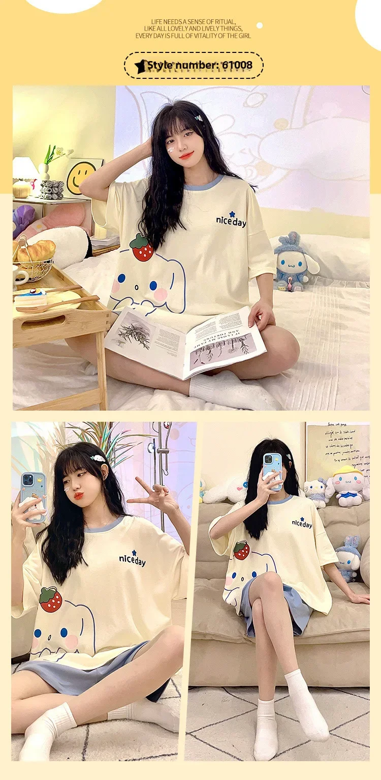 • Stylish Design :Featuring a striped pattern and cute cartoon design, these pajamas add a touch of fun and charm to your sleepwear collection, making them a great choice for spring, summer, and autumn.