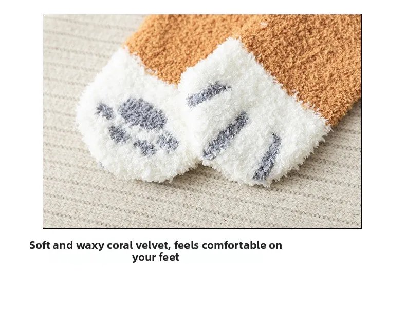 Women Socks Winter Warm Fluffy Socks Cute Animal Claw Cat Paw Footprint Fuzzy Socks Thicken Coral Fleece Home Floor Sleep Socks