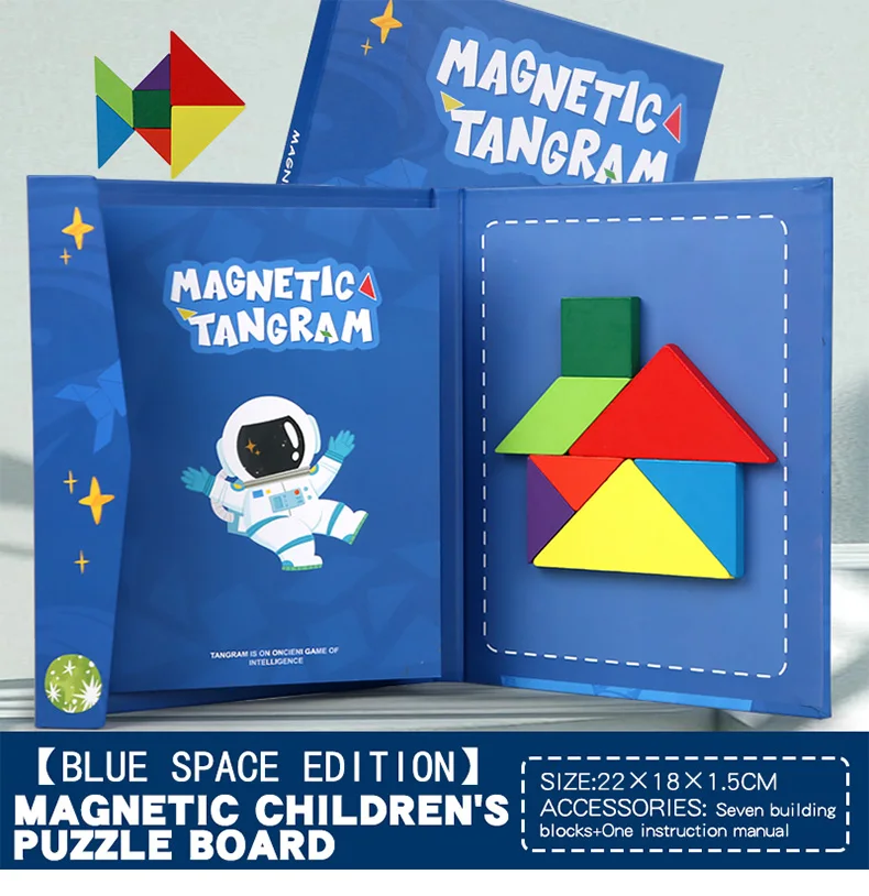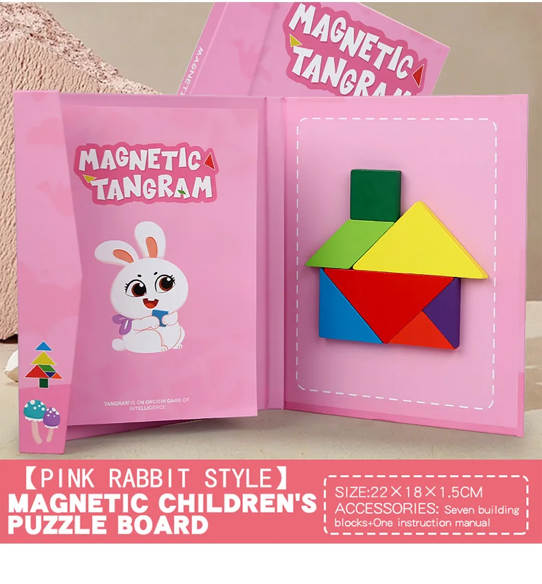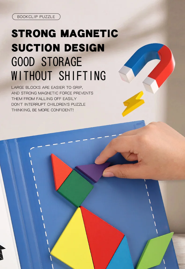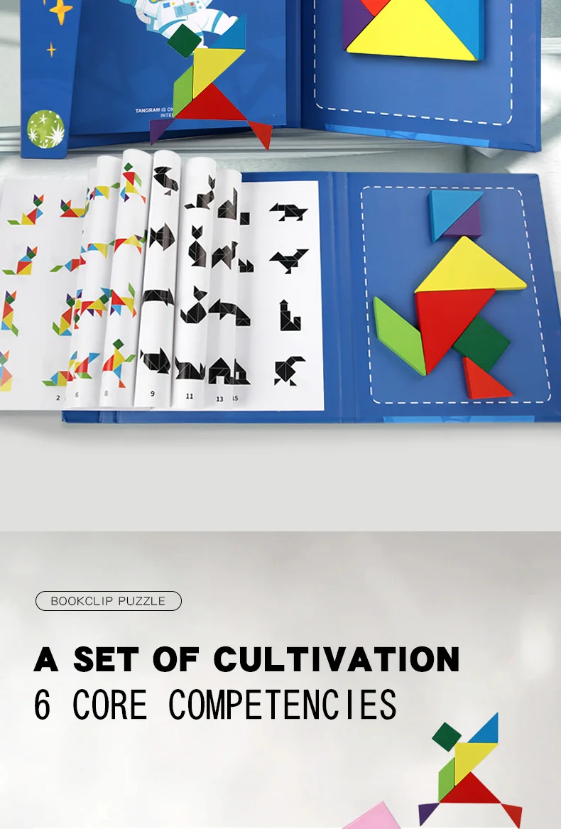 Wooden Jigsaw Magnetic Tangram 3D Puzzle Book Educational Toys For Children Mont