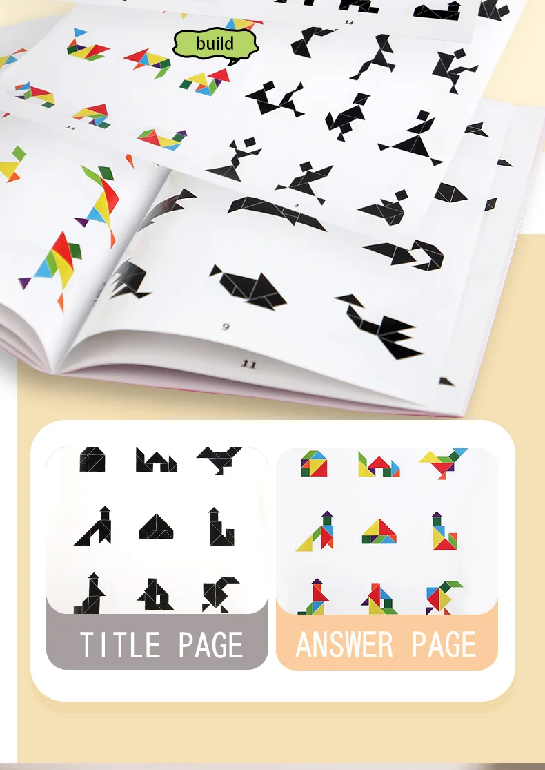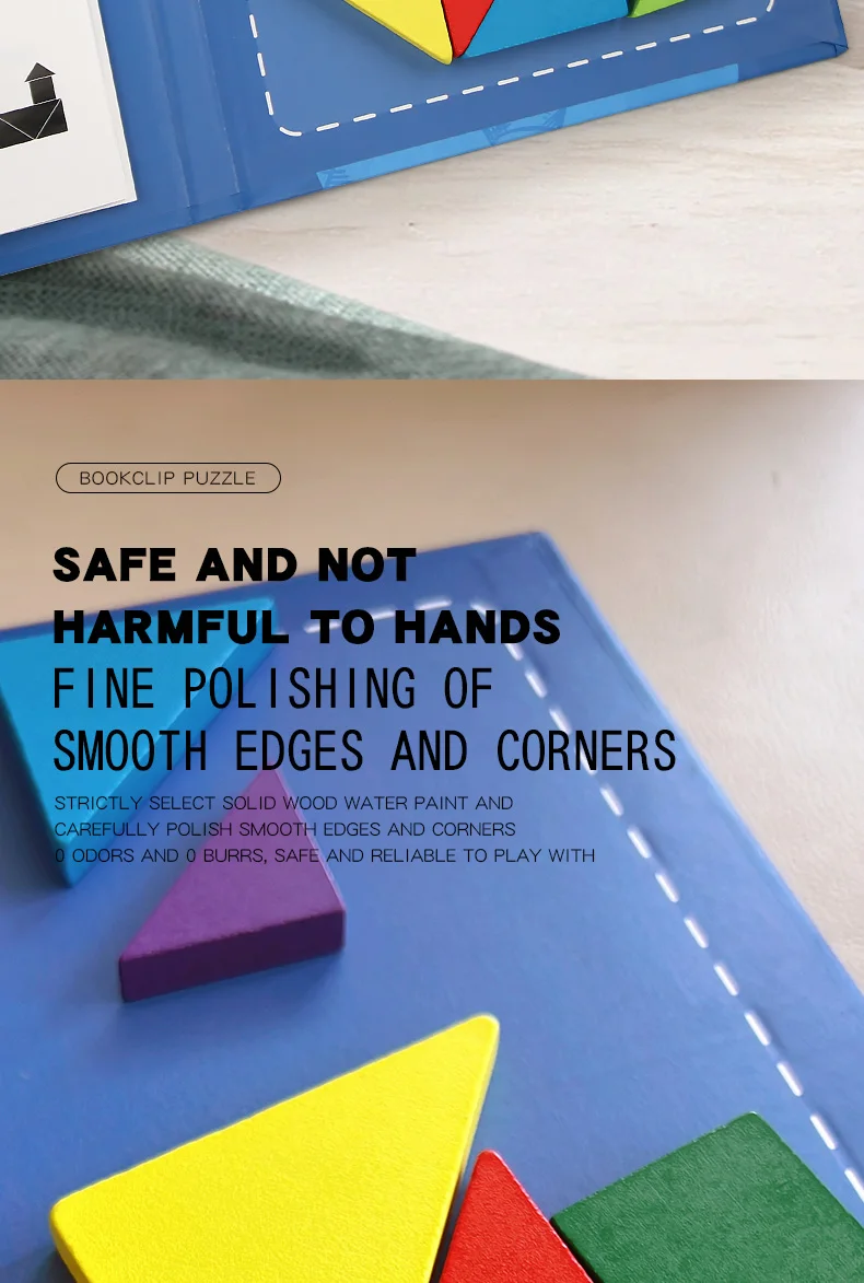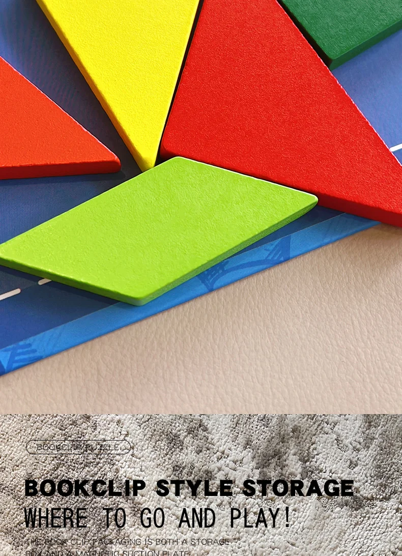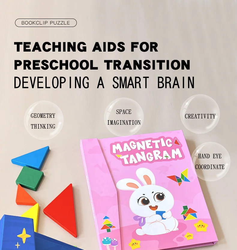 Wooden Jigsaw Magnetic Tangram 3D Puzzle Book Educational Toys For Children Mont