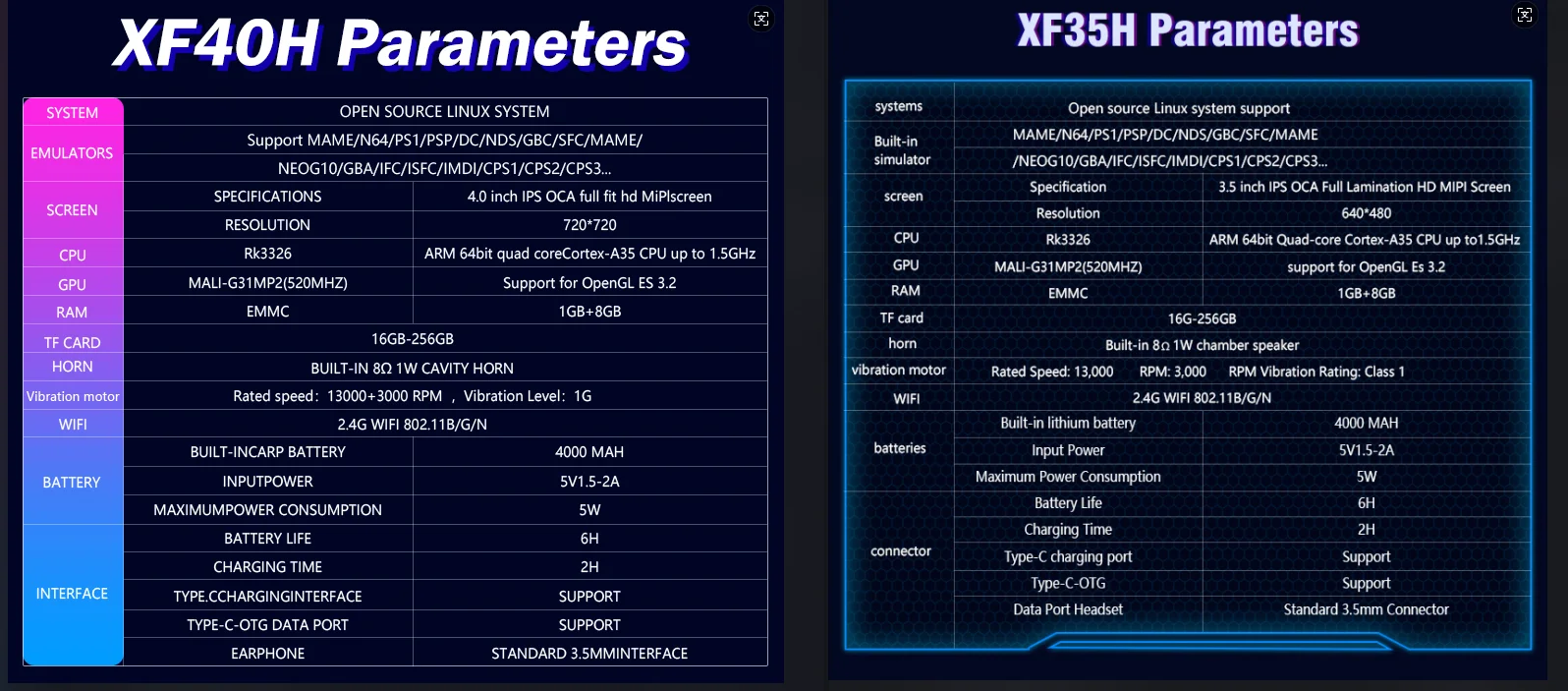 XF40H XF35H Pocket Video Player Retro Handheld Game Console 4" 3.5" IPS Screen 4