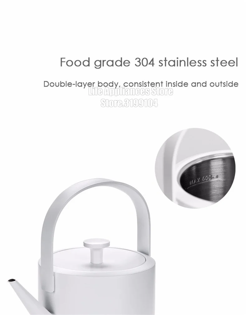 ●XiaoTi electric kettle, retro design, 304 stainless steel material, it is not only an electric kettle, but also a desktop artwork, suitable for home, hotel, office, tea room, etc., 600ml capacity, 1200W power, fast boiling water, suitable for brewing hand-brewed coffee, tea;