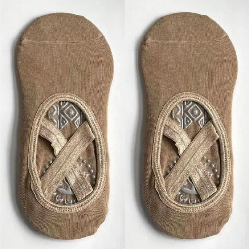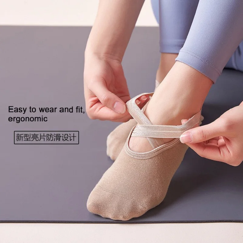 Yoga dance indoor sports silicone anti slip cross strap round head breathable elastic sports socks