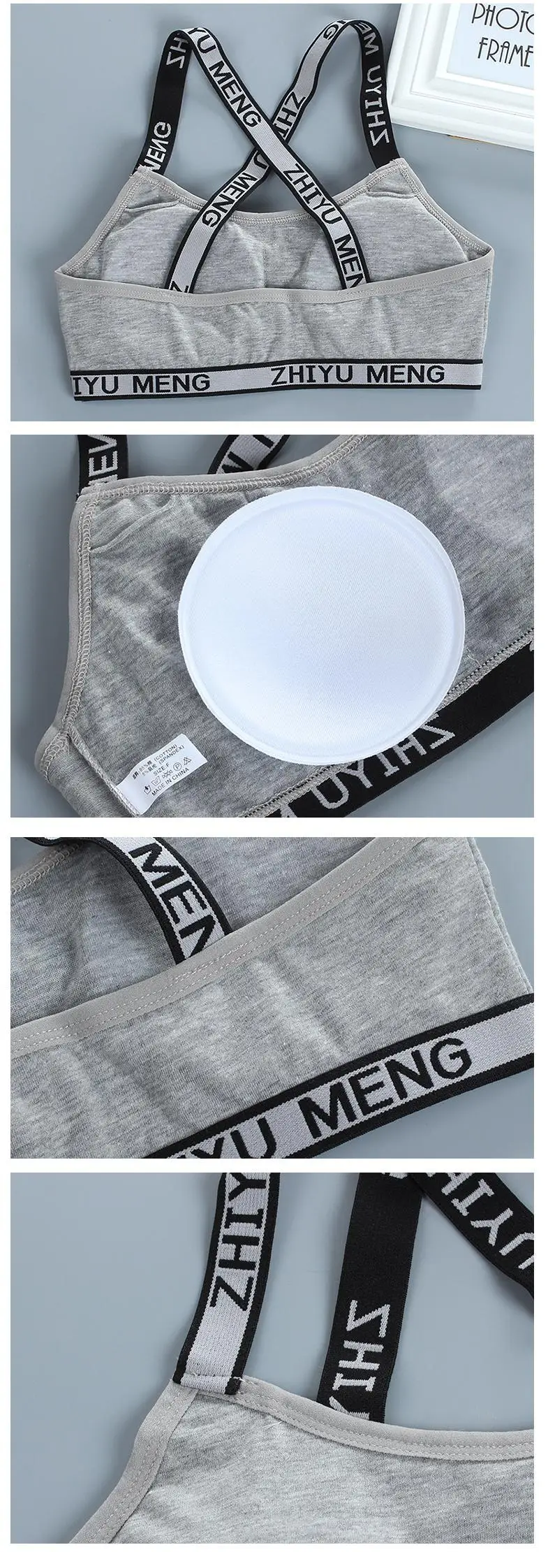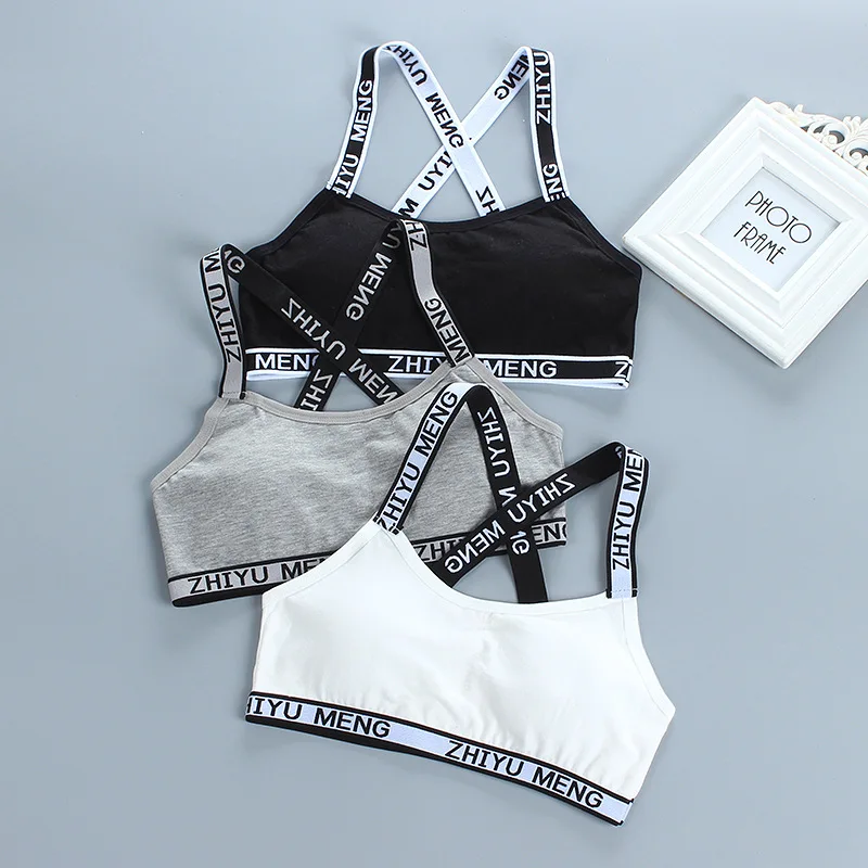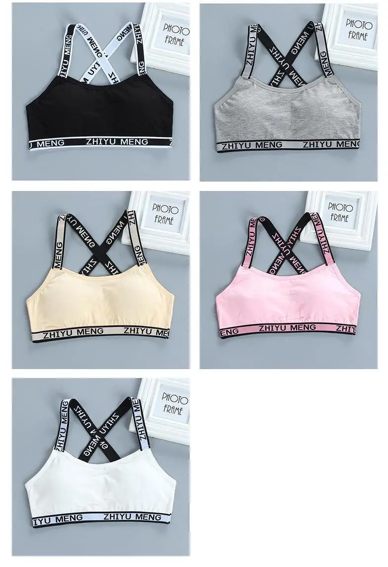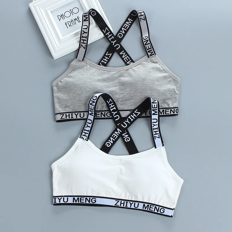 Young Children Girls Bra Cotton Underwear For Puberty Letter Girls Developmental Underwear Cross Bra Kids Vest Teenage Camisoles