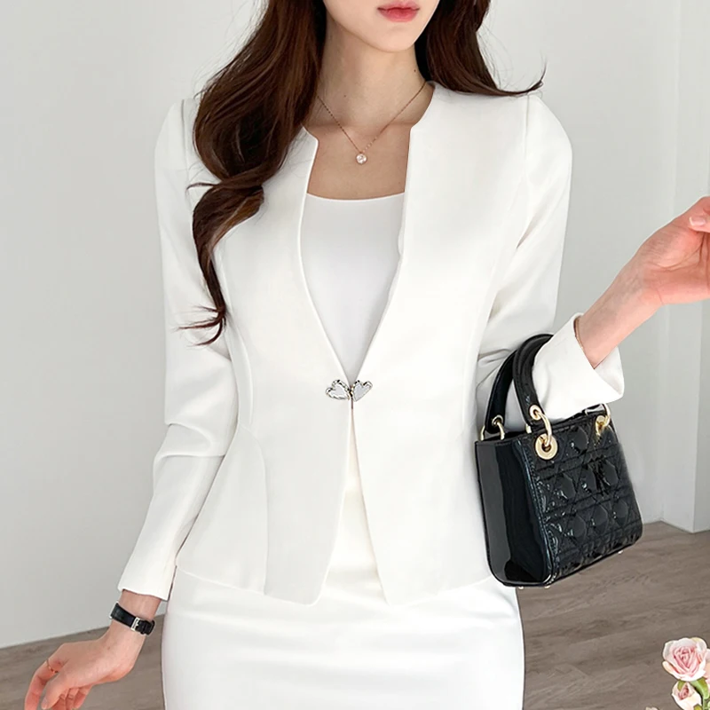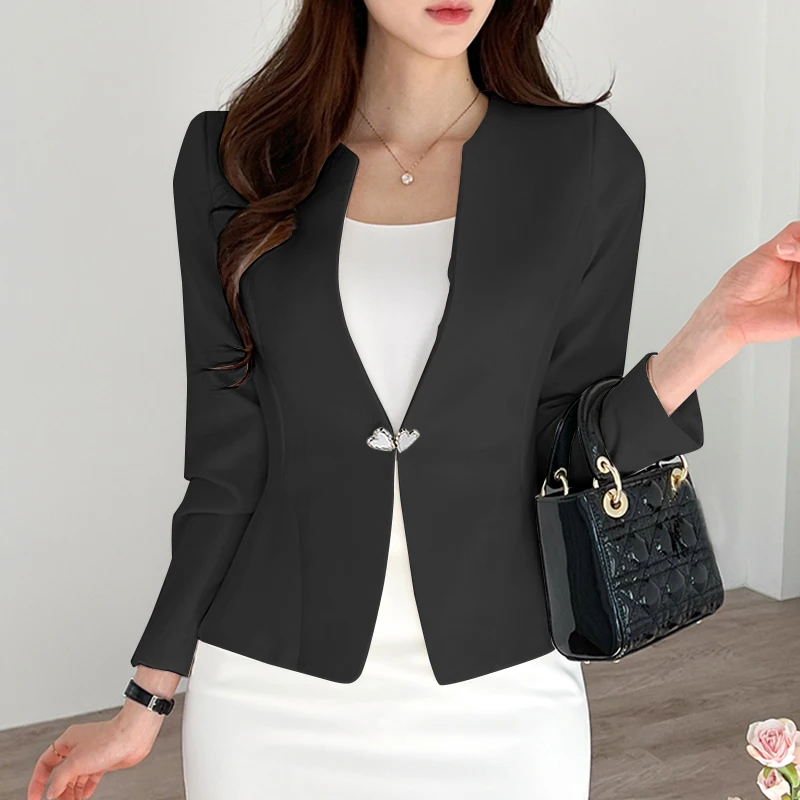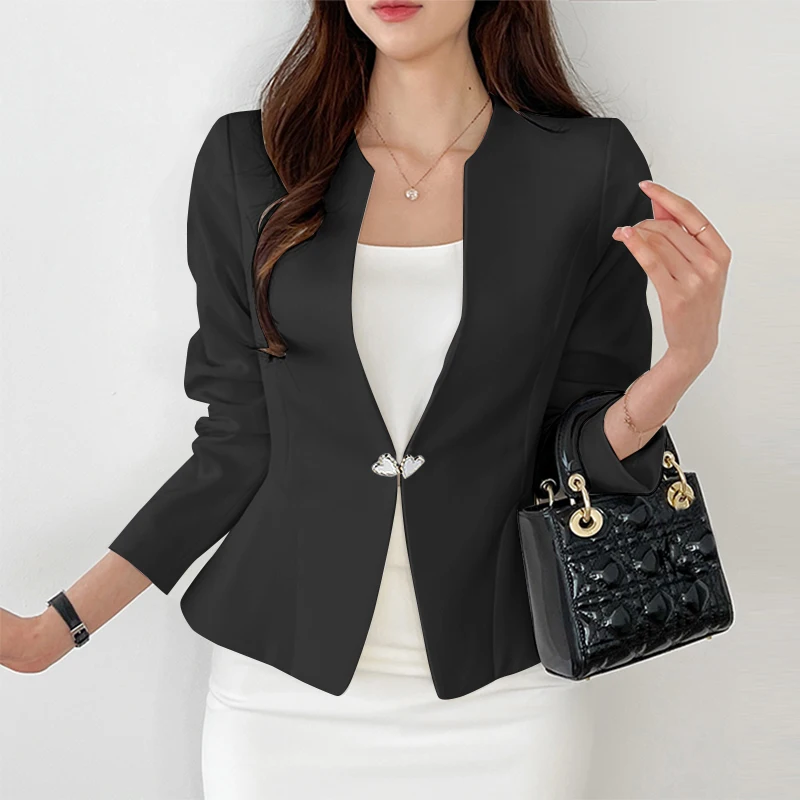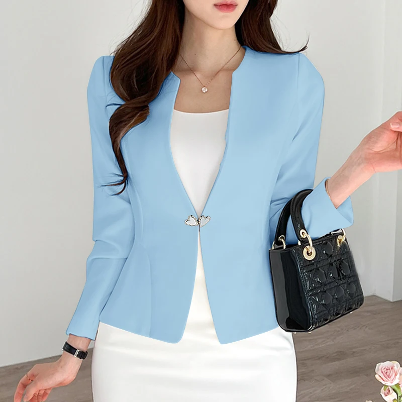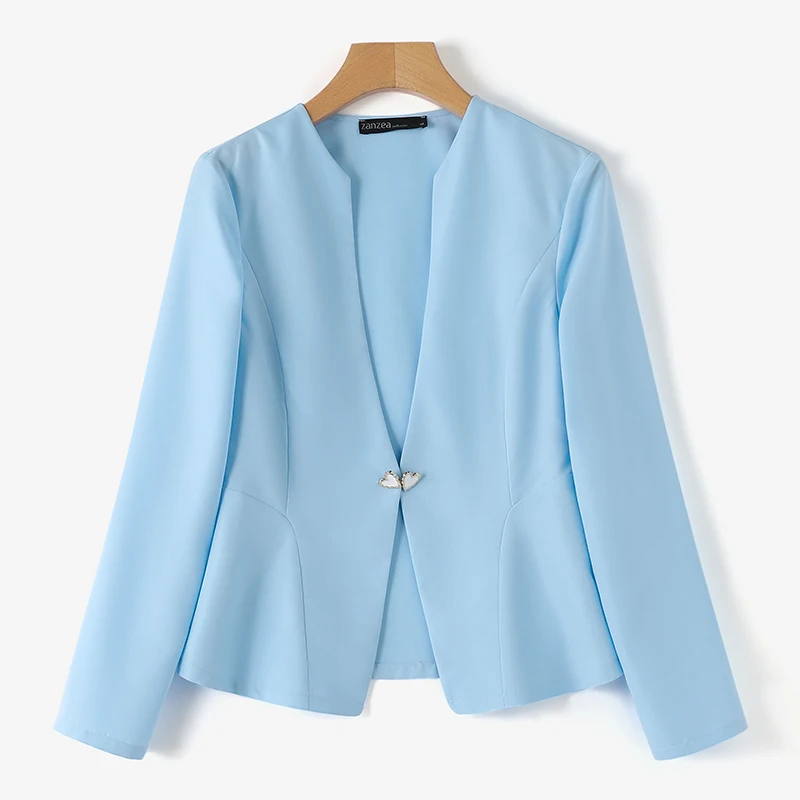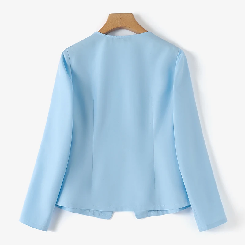 Features:open placket,Collect waist,A-line Blazer