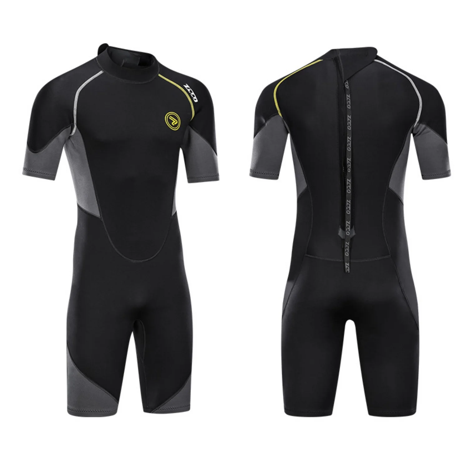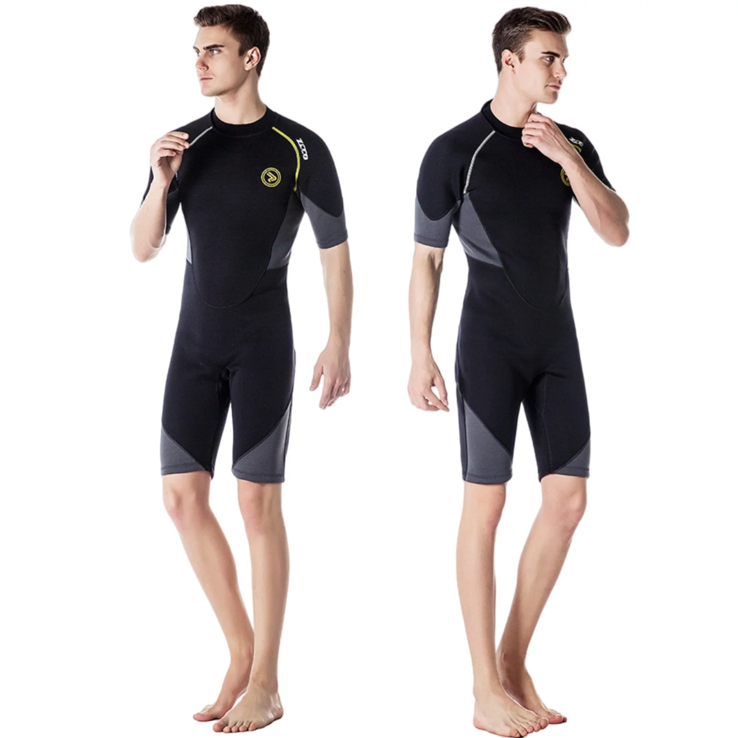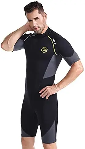 Mens shorty wetsuits premium material include CR neoprene nylon and spandex,primarily providing thermal insulation, buoyancy, UV protection, abrasion protection and defense against the bite of marine life.