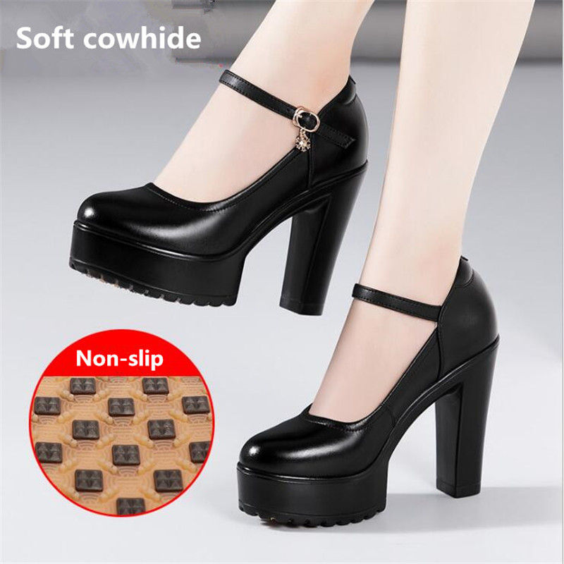 Cowhide Women's High Heel Shoes With Heels Platform Mary Jane Shoes Women Pumps