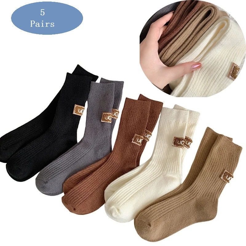 5 Pairs Women's High Quality Socks Maillard Alphabet Sports Mid length Socks Sea